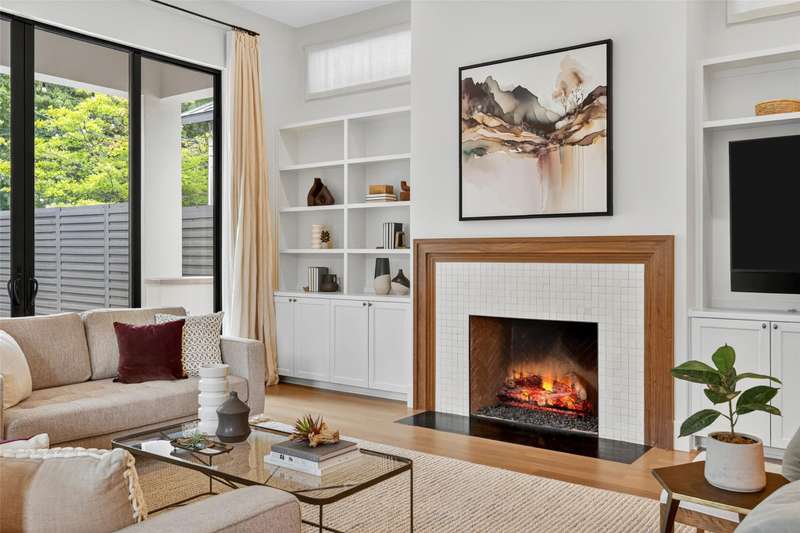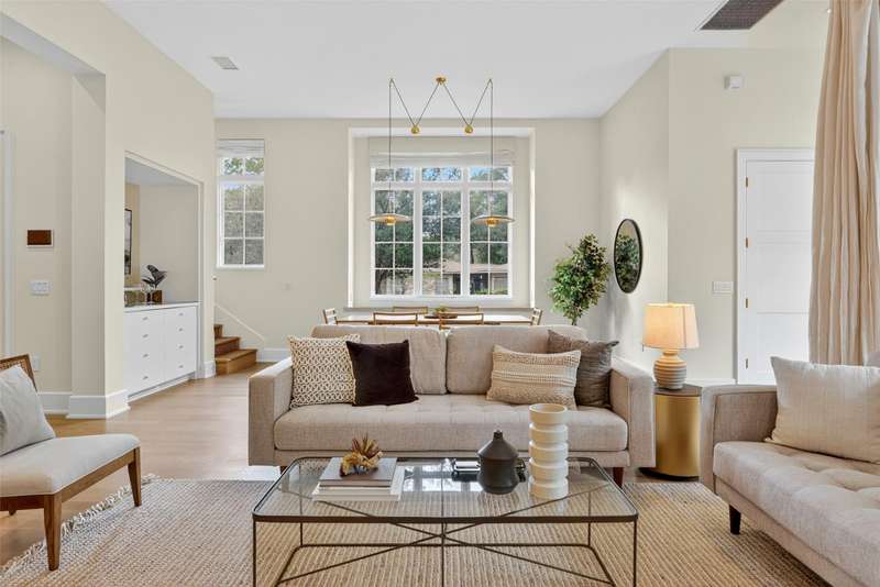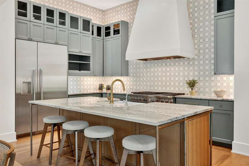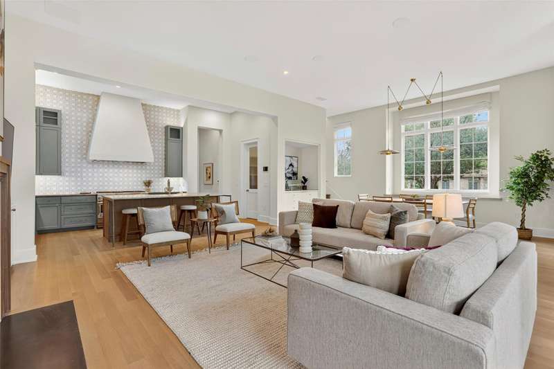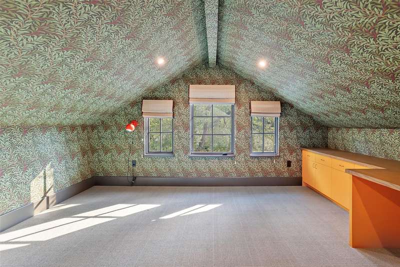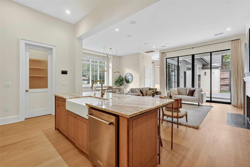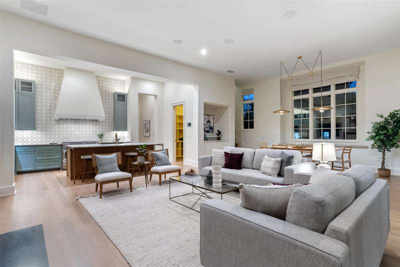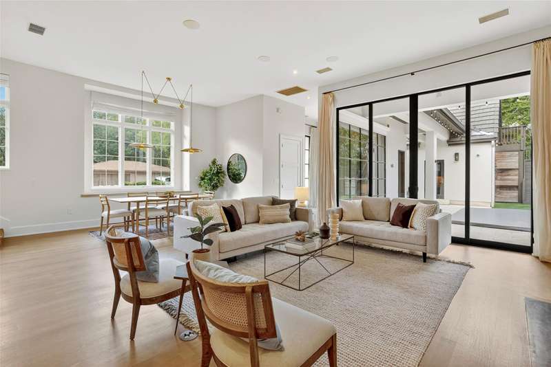 Inside, interiors enhanced by Ann Tucker of Studio A bring a thoughtful sense of style, while natural light and clean lines create an inviting atmosphere throughout. A detached guest suite above the garage provides flexible space for visitors, a home office, or studio.