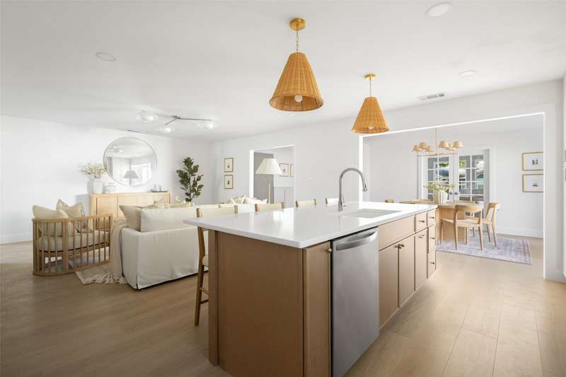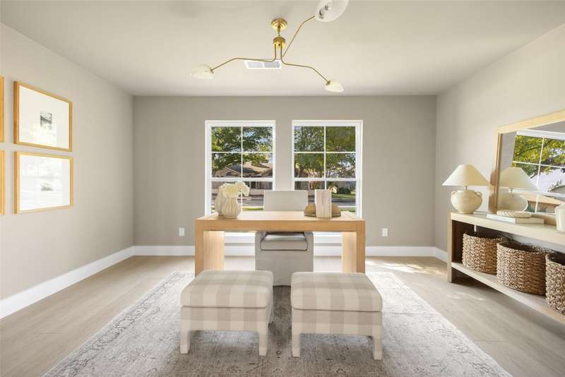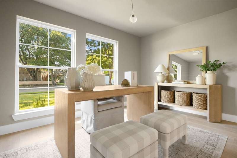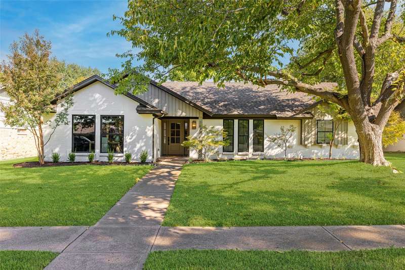 Welcome to 7837 El Pastel a beautifully reimagined ranch-style retreat in the heart of Far North Dallas, where timeless design meets modern living.This stunning single-story home spans 2,444 square feet and has been thoughtfully refreshed from top to bottom with intentional design, elevated finishes, and a layout that blends light, comfort, and functionality. At the front of the home, a dedicated home office and a sunlit dining room create a warm welcome, offering the perfect balance between productivity and connection. Step inside to discover the show-stopping living room a space that truly captures the essence of open-concept living. With a stately fireplace and seamless flow into both the kitchen and sunroom, its ideal for entertaining guests or enjoying quiet nights in. The chefs kitchen serves as the heart of the home, featuring warm two-tone cabinetry, quartz countertops, statement lighting, stainless steel appliances, and an oversized island that catches the morning light. Whether hosting family dinners or casual brunches, this space blends style and function effortlessly. The primary suite provides a serene retreat with three closets including an oversized walk-in and a spa-inspired ensuite bath complete with a glass-enclosed shower, separate toilet room, and double vanity with gleaming hardware and designer details. Two secondary bedrooms are thoughtfully placed for privacy and flexibility, sharing a beautifully updated hall bath perfect for guests, kids, or a home gym setup. Step outside to your private backyard oasis, featuring a large covered patio, mature trees, and plenty of space to relax, garden, or entertain. The bonus sunroom extends the living space, creating an ideal spot for a reading nook, playroom, or flex space to fit your lifestyle. Located in the sought-after Richardson ISD, this home feeds into Bowie, Parkhill, and JJ Pearce. Enjoy the convenience of being just minutes from everything.