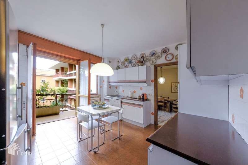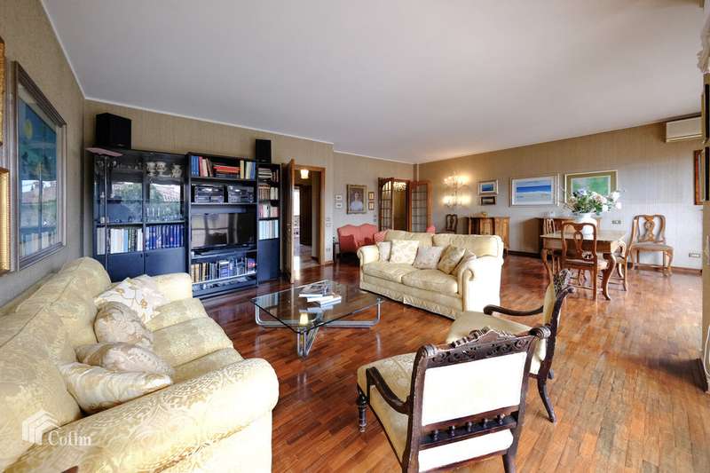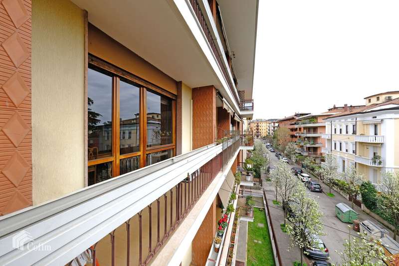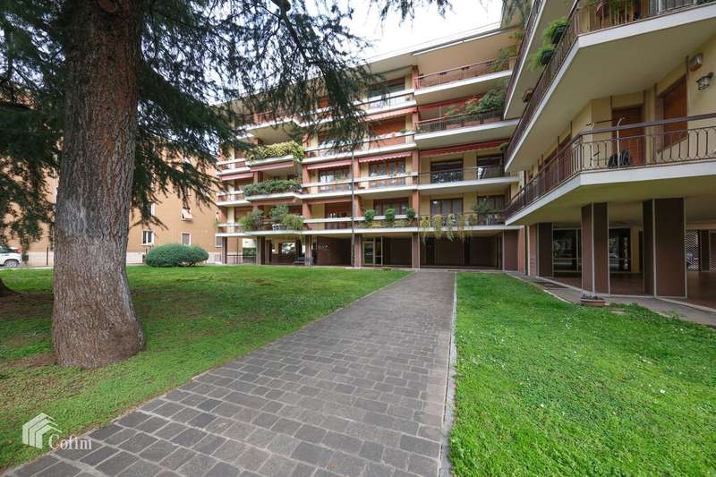 In an elegant and refined condominium context in the exclusive Borgo Trento district, a bright and fantastic apartment of generous dimensions is offered for sale with its terraces and balconies. The property is located in a strategic area being close to the city center and is convenient to all services. The apartment is located in a very suggestive condominium being surrounded by greenery with also a nice private internal parking and is composed of: an entrance hall, a large and bright living room with large terrace, large dining area connected to a large eat-in kitchen with attached laundry / bathroom, a long corridor that houses the wardrobes and a closet, 3 large bedrooms and two bathrooms with windows. The presence of large windows along the perimeter of the house makes it very bright at all hours of the day. A large cellar and a double garage not included in the price ;complete the property. The finishes, even if original from the time, are very elegant, alternating parquet floors with marble floors, some shutters are electric, presence of air conditioning and central heating.