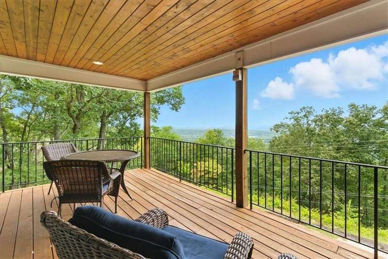 Beautiful 4-bedroom, 3.5-bath home on Mount Alto with breathtaking mountain views! This versatile property offers the perfect fit as a primary residence, vacation retreat, or income-producing rental. The main level welcomes you with wood planked vaulted ceilings accented by rustic beams, a stone fireplace, and an updated kitchen featuring solid-surface countertops, stainless steel appliances, and a farmhouse sink. From the kitchen and living room, soak in sweeping mountain views, or step out onto the covered deck to fully enjoy the scenery. The owner's suite with a full bath is conveniently located on the main level, along with a half bath and laundry. Upstairs offers two spacious bedrooms and a full bath, while the fully finished basement provides a second living area, bedroom, and full bath with outdoor access. The lower-level covered patio also opens to gorgeous mountain views, giving you a serene backdrop from every level of the home. With two covered outdoor living spaces and panoramic views throughout, this home captures the best of mountain living right in Rome. Don't miss this unique opportunity-schedule your private showing today!
