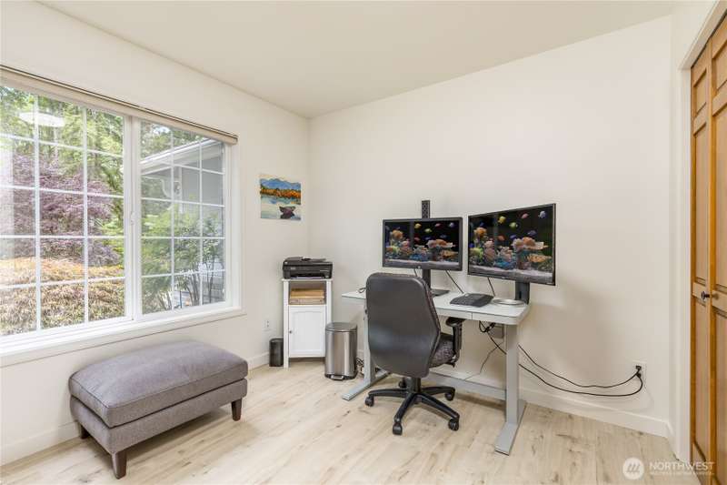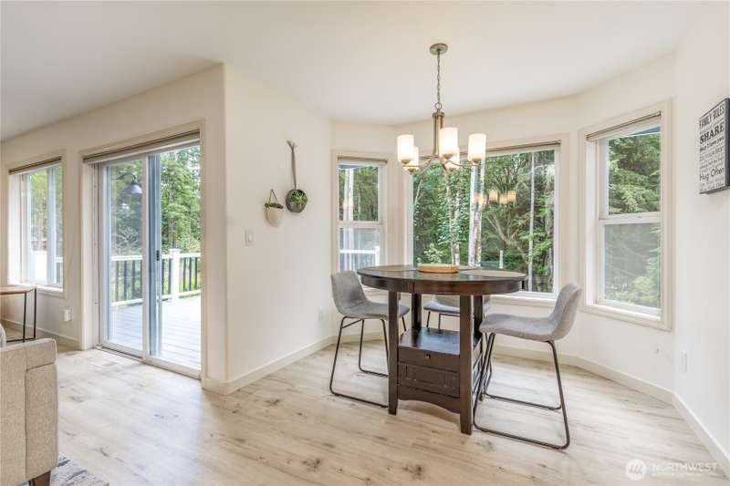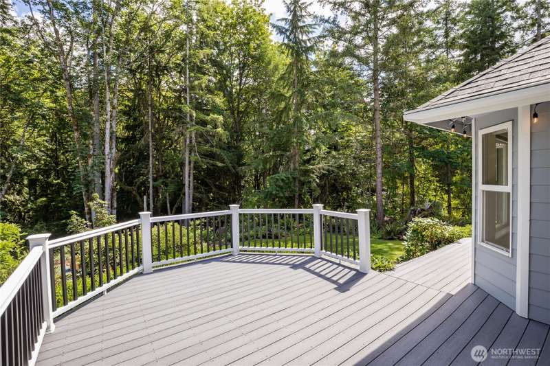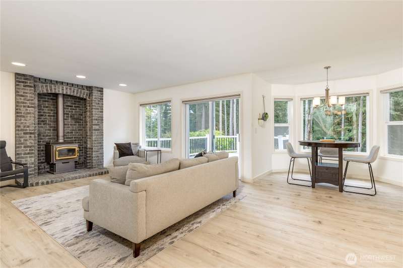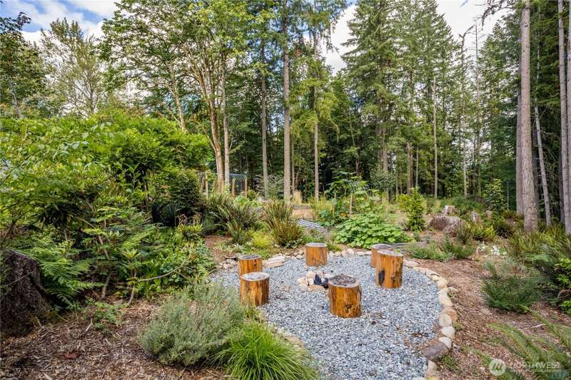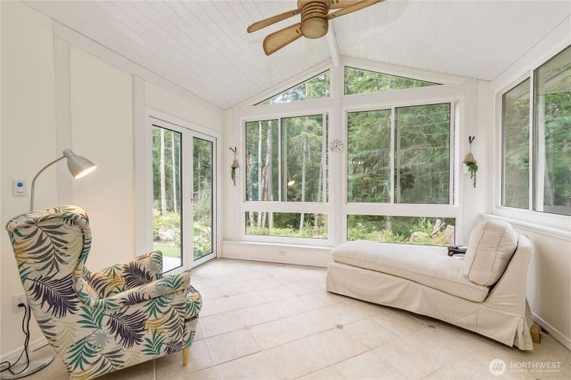 Tucked away on nearly 5 acres of evergreens, this home offers a rare blend of comfort, beauty, and tranquility. Step inside to soaring ceilings, sunlit rooms, and a graceful flow that feels both warm and refined. Curl up by the wood-burning stove, sip coffee in the radiant-heated sunroom, or gather on the expansive deck overlooking your private pond and forest. Thoughtful updates- including newer roof (2018) and James Hardie siding (2018), LVP flooring, heat pump, Leafguard gutters, generator wiring, Trimlight programmable under-eave lighting and a spacious 3-car garage. Whether entertaining by the firepit, wandering garden paths, or simply savoring the peaceful wooded views, this retreat invites you to slow down, and enjoy life.