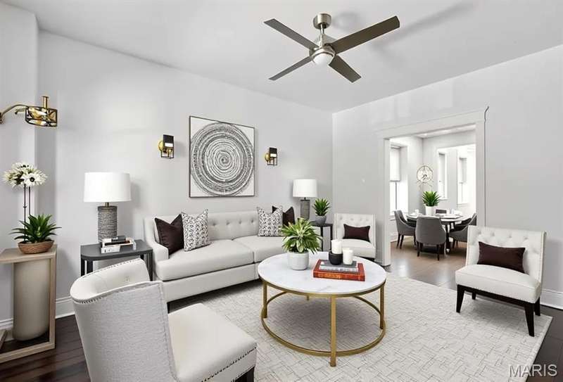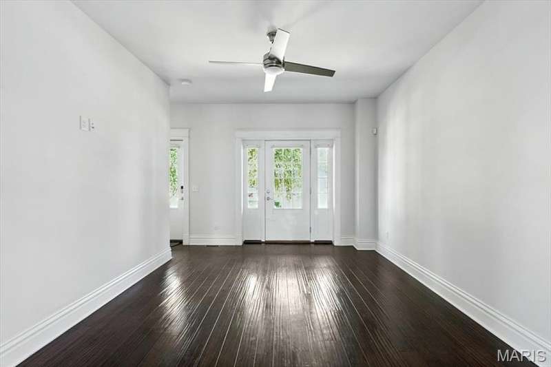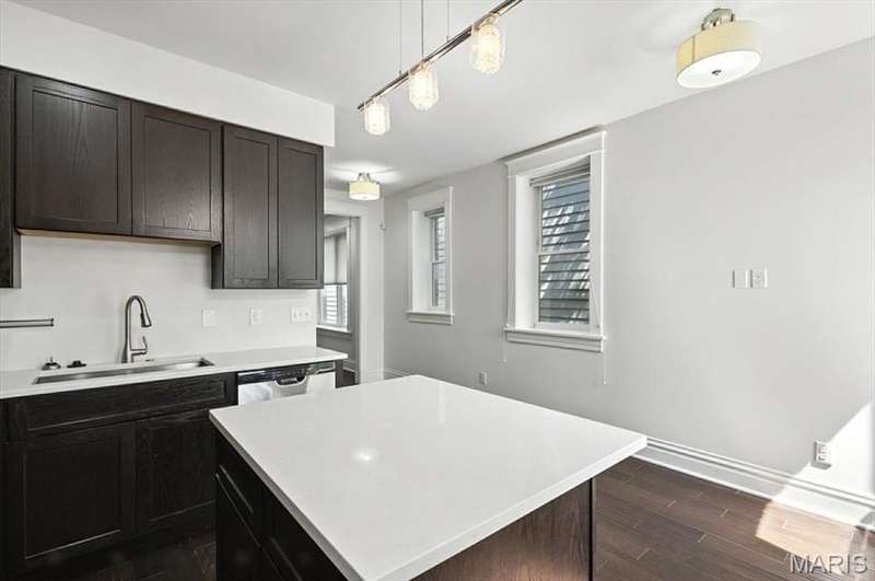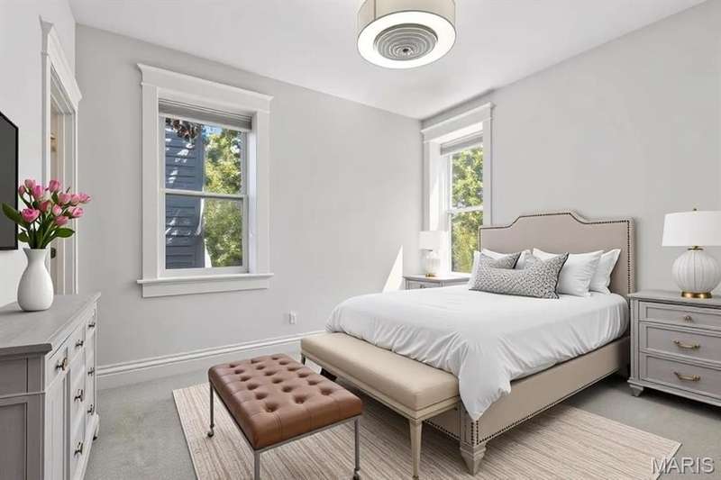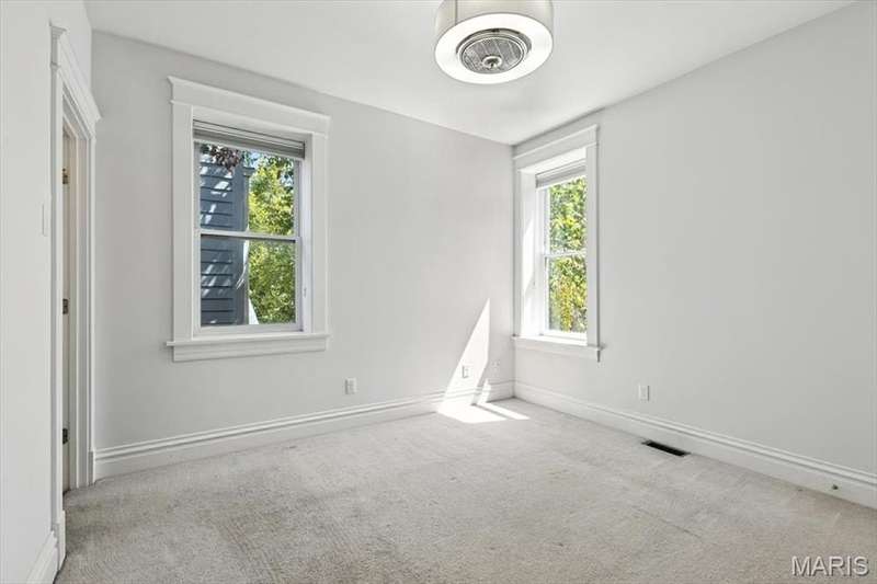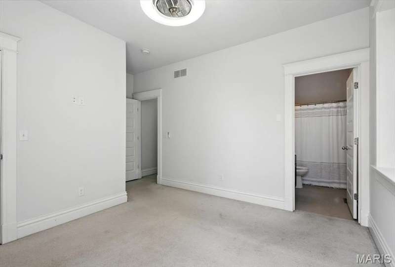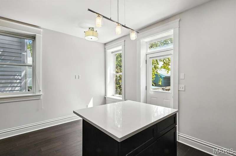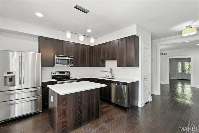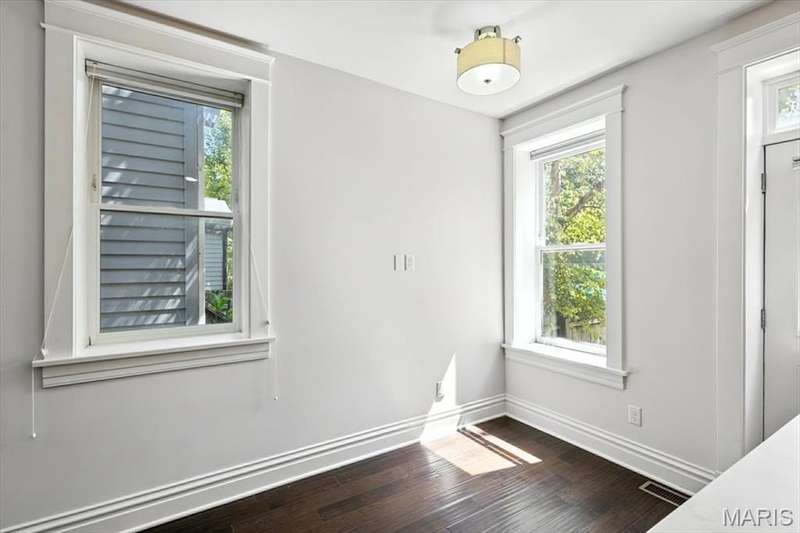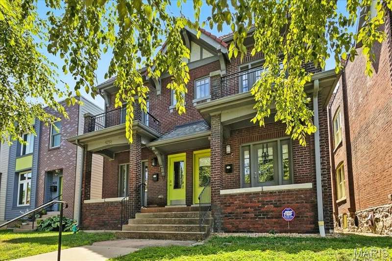 Charming in South City! This beautifully renovated 3-bedroom, 3-bath townhome in the heart of Botanical Heights is a must see. A gracious front porch welcomes you into a spacious living room that flows seamlessly into the dining area and eat-in kitchen—perfect for entertaining. Kitchen features a large island and pantry closet and is filled with natural light. A convenient half bath completes the first floor. Upstairs, the front bedroom features a private balcony over the porch, while the second bedroom offers French doors and stylish shelving. A full hallway bath and second-floor laundry add comfort and convenience. The primary suite boasts a walk-in closet and a full bath. Enjoy ample storage in the unfinished walkout basement. The fenced backyard leads to a 2-car garage, providing privacy and practicality. This home blends historic charm with modern updates—don’t miss your chance to own a piece of Botanical Heights!