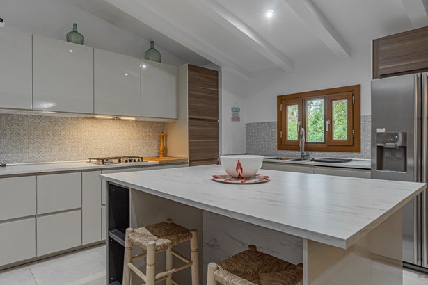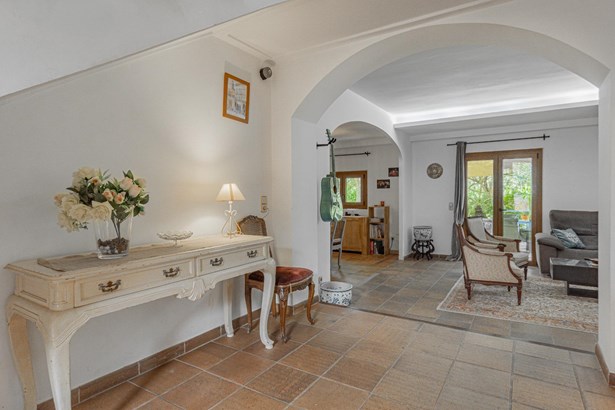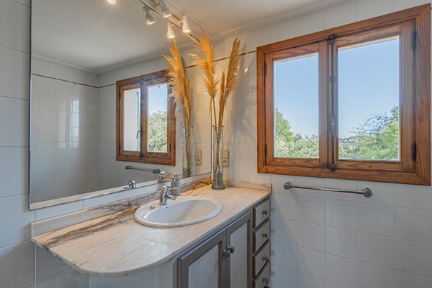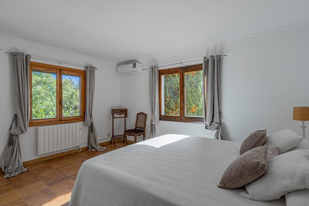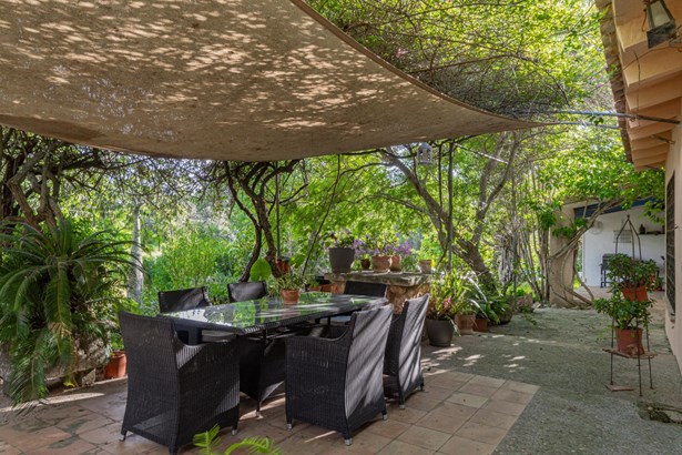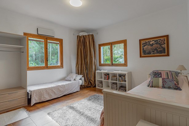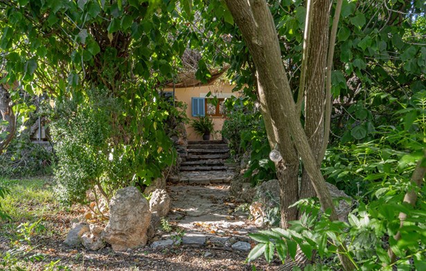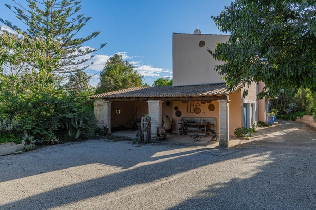 Country house with pool surrounded by nature in Manacor~~Country house located on the outskirts of Manacor, in a natural and peaceful environment. It is located 15 minutes from the beach and 40 minutes from the airport. The property has a large plot of 21,272m2 of agricultural land, fully fenced and surrounded by a stone wall where there is a two-story, 300m2 house ready to move into, including a pool, terraces and porches.~~Outside, a large pool with a relaxation area is surrounded by nature. This area connects to a porch and a furnished terrace. In addition, the property has its own botanical garden, which includes a careful selection of certified organic plants and varieties, a pond, a cistern, and a variety of fruit and ornamental trees, both native and imported.~~Inside, on the ground floor, we find a bright furnished living-dining room with two fireplaces, which connects to an open kitchen with an island, made with marble and walnut wood. On the same floor there is also a bedroom and a full bathroom, as well as access to the garage with two parking spaces.~~On the first floor, a hallway leads to three bright double bedrooms with built-in wardrobes, all with views of nature and the mountains, and to a full bathroom. The master bedroom also has air conditioning.