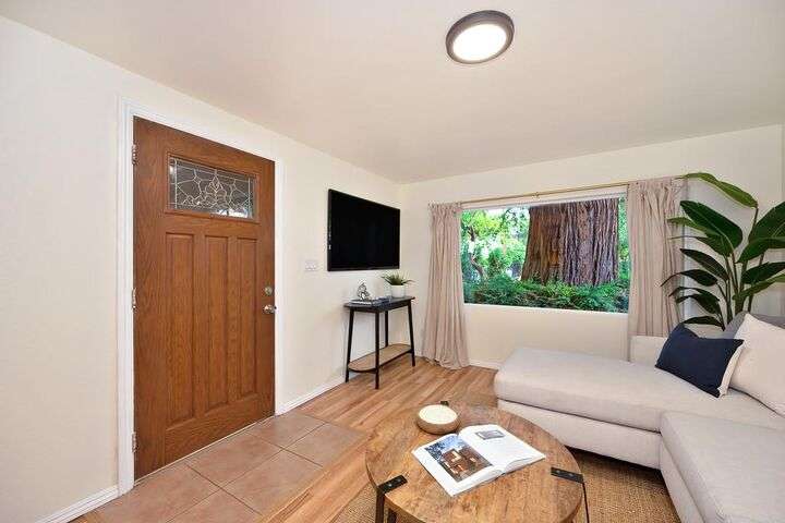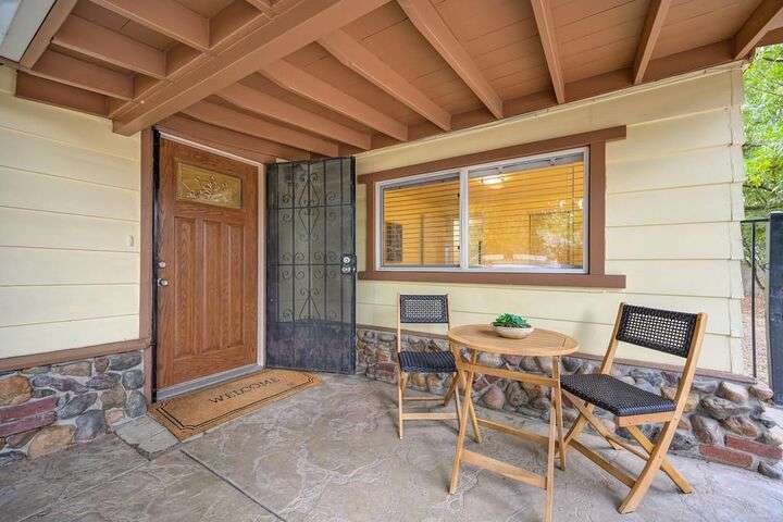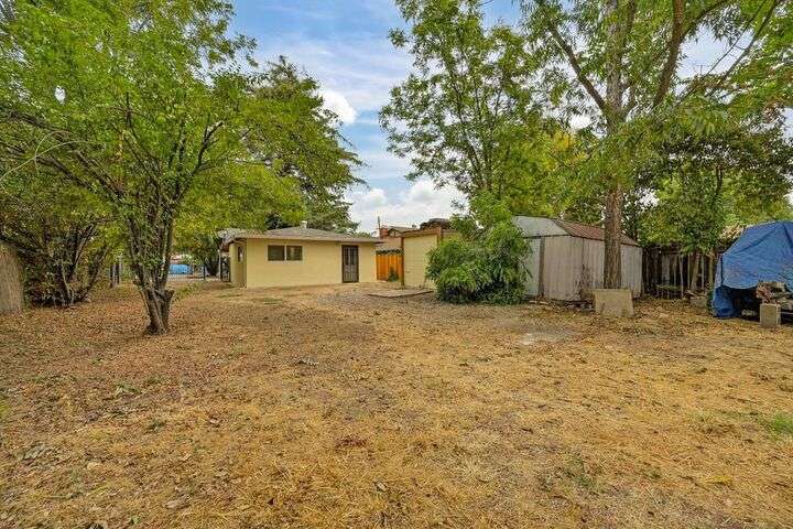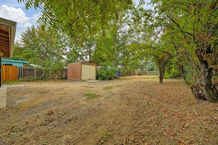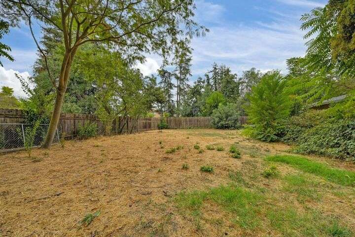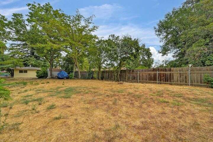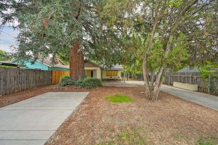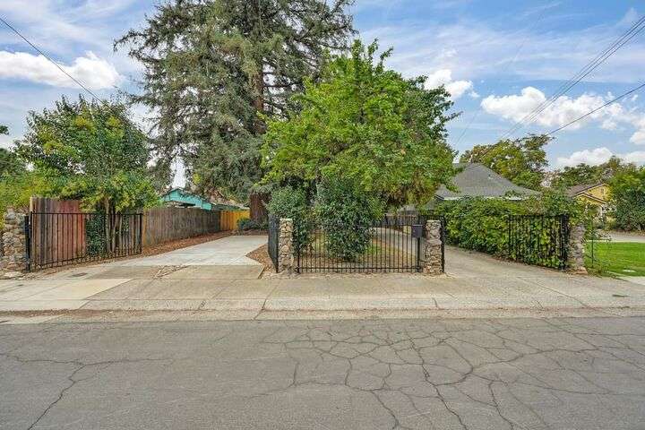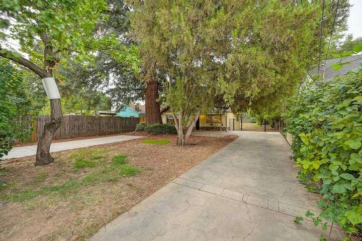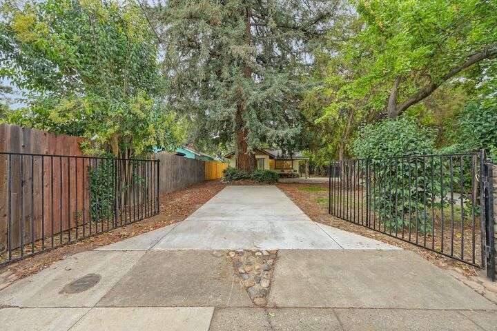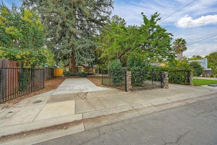 Nestled beneath the canopy of a majestic redwood, more than a century old, this charming two-bedroom, one-bathroom home offers both history and possibility. Sitting on a rare quarter-acre lot in Colonial Heights, the property is abundant with life: mature shade trees, stone fruit trees, and blackberry bushes, all adding beauty and bounty to the landscape. The gated front and back yards provide privacy and security, while the inviting covered front porch sets the stage for warm welcomes and quiet mornings. Practicality meets potential here too. Two separate driveways make parking and access a breeze, while an extra container storage unit adds room for tools, hobbies, or supplies. Inside, the living room's large picture window perfectly frames the soaring redwood, offering a view that changes with the light and seasons. The lot itself invites creativity: an urban garden, an ADU, a pool, or future expansion could all find their place here. Colonial Heights is one of Sacramento's hidden gems. Tree-lined streets, a beloved community library, and neighbors who look out for one another. It's a place where old-world charm meets new ideas, making it perfect for those ready to write their own story. See this home not just for what it is but for the potential of what it can become.
