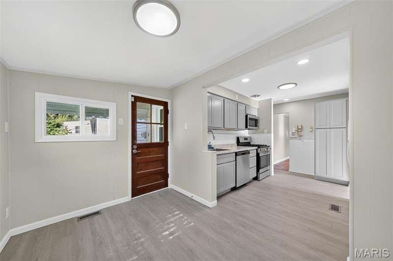 Fully remodeled & move in ready! Beautiful hardwood flooring, crown molding, new lighting & paint. Other updates include new kitchen cabinets & pantry, new stainless gas range, microwave, dishwasher, sink & disposal, countertop, flooring & lighting, new flooring in basement along with updated electrical service & new plumbing stack. All new double hung, tilt in windows throughout. Updated bath with newly glazed cast iron tub, new fixtures, lighting & flooring. Spacious living room just off kitchen & dining areas & breakfast area off kitchen. Three bedrooms, attached garage, vinyl siding & fenced yard. Clear municipal inspection. Down payment assistance may be available for you.