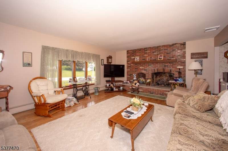 This Spacious RANCH Home has so much to offer! Please come in for a look. As you enter you will notice the custom brick Gas Fireplace in the Living Room. The Dining Room is Warm and Welcoming. Look at this Kitchen. Custom Cherry Cabinets, Corian Countertops and a Custom Hood over the Stove. The Sitting Room is calling you to Relax. But wait, perhaps you will want to make yourself Comfortable on the 3 Season Porch that looks out over the Spacious, Serene Yard. Three Bedrooms, a Full Bath and a Half Bath complete the First Floor. The Basement is finished and offers yet more Living Space. A Family Room and additional Room currently used as a Bedroom will make a great space for a Home Office. Situated on a Double Lot makes this HOME even more appealing.