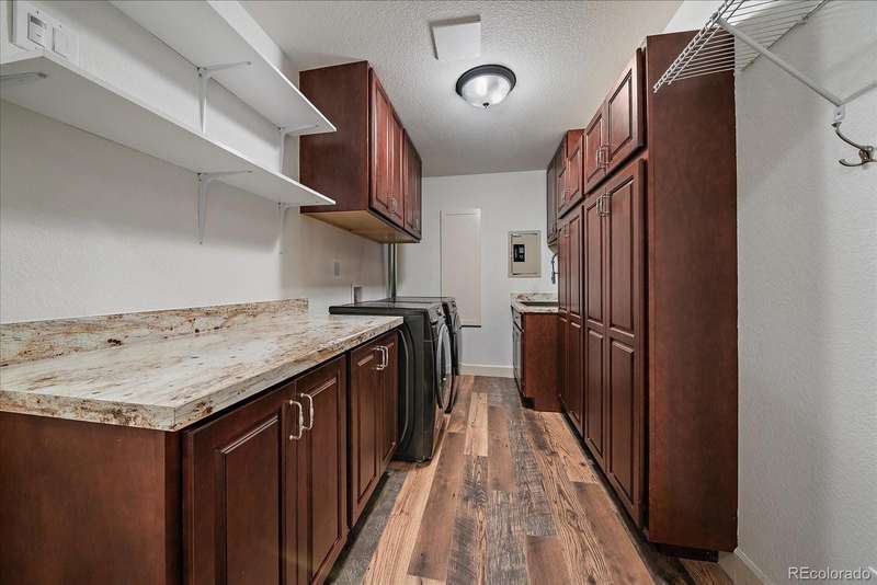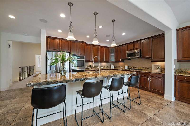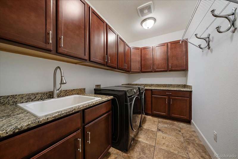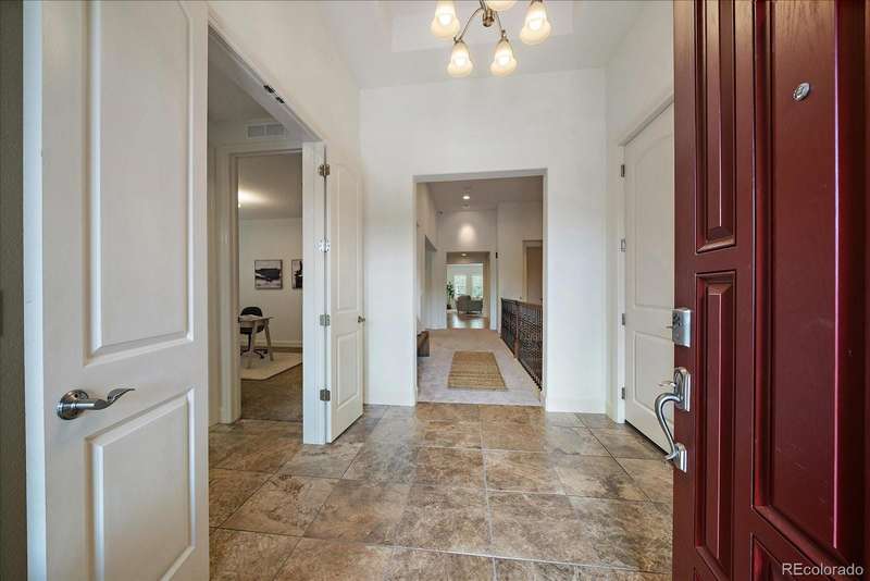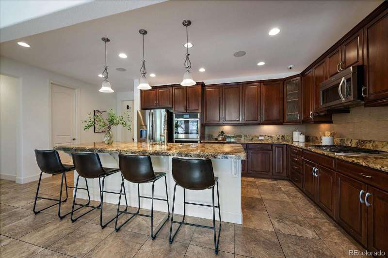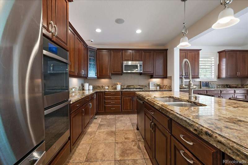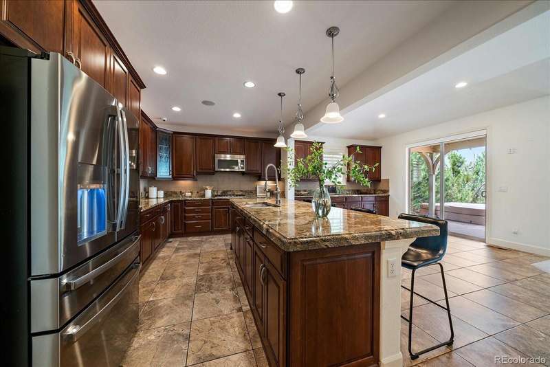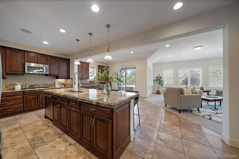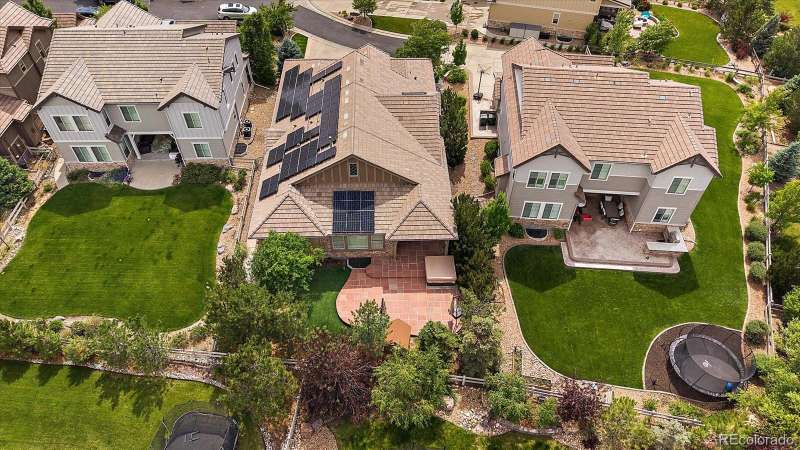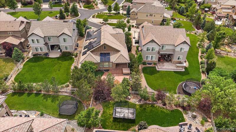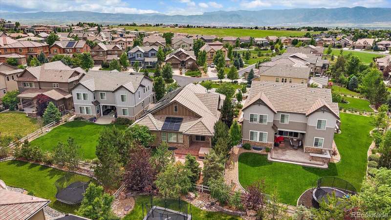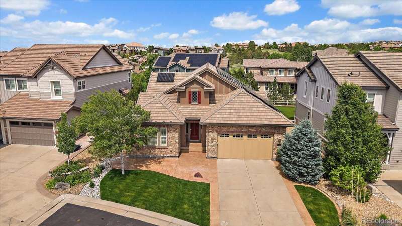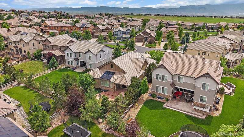 Luxury meets low-maintenance living in this beautiful Shea ranch home in the gated BackCountry community. Thoughtfully designed, this home features 7 bedrooms, 6 bathrooms, and a versatile layout ideal for multigenerational living or hosting guests. The main floor includes a vaulted-ceiling primary suite and living room, a gourmet kitchen with stainless steel appliances, double ovens, Masterpiece cherry cabinetry, soft-close drawers, and a walk-in pantry. Designer touches include Hunter Douglas shutters, high-end granite and marble finishes, ceiling speakers, and premium tile work. The main-floor primary suite offers a spa-like 5-piece bath with an expansive shower and walk-in closet. Two additional bedrooms on the main level provide flexibility for guest rooms or home offices. The finished basement includes four more bedrooms, three bathrooms, and a flex room with built-in storageone room features sound-canceling tiles, ideal for a studio or quiet retreat. Step out to a professionally landscaped backyard with astro turf, evergreens, perennials, a flagstone patio, a hot tub, and a pre-installed gas line for grilling. The west-facing driveway reduces snow buildup and offers convenient guest parking. Additional features: two laundry rooms, paid-off solar panels, a tankless water heater, air purifier, CAT-5 Ethernet, a Tesla charging station, and ample storage. A standout amenity is the fully integrated Control4 smart home system, offering centralized control via two in-wall panels, eight security cameras, automated thermostat, intercom, keyless entry, security system, and smart lightingall accessible remotely. Residents enjoy a private clubhouse with a pool, fitness center, spa rooms, wine bar, and an exclusive on-site coffee shop. With community events, top-rated schools, and nearby shopping and dining, BackCountry offers unmatched Colorado living. Some of the online images are AI-generated and for illustration only. They do not reflect actual appearances.