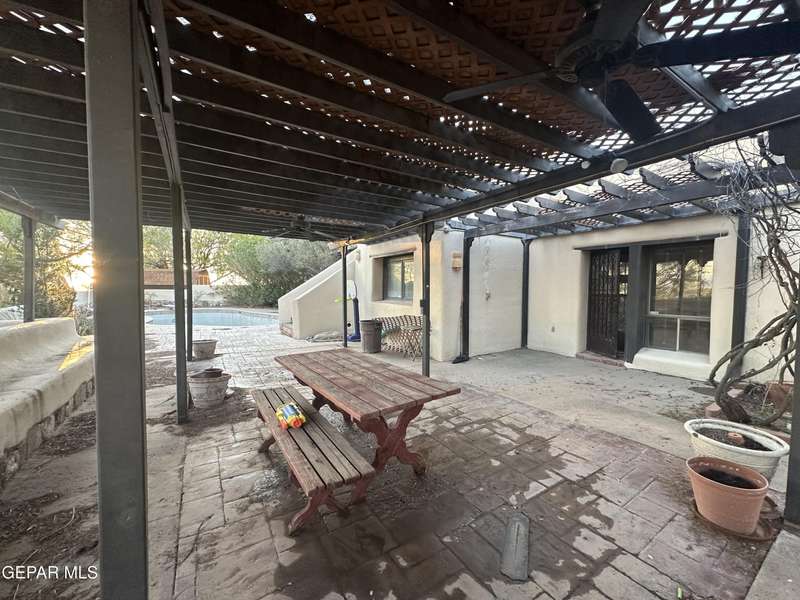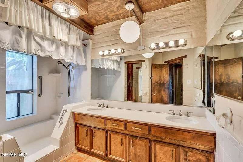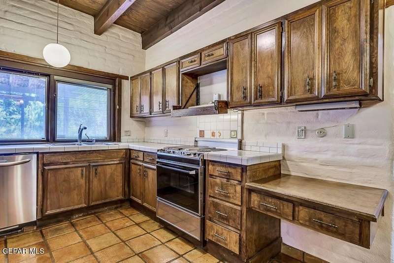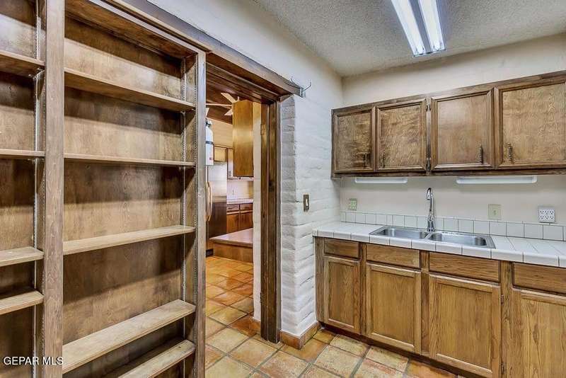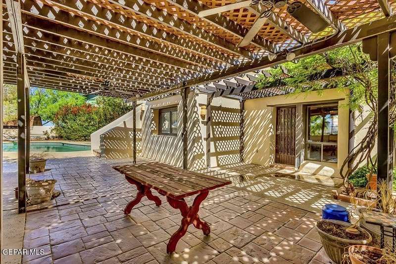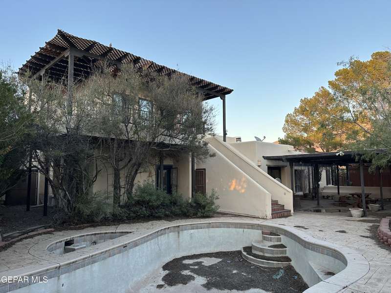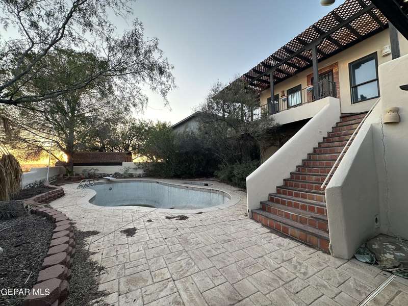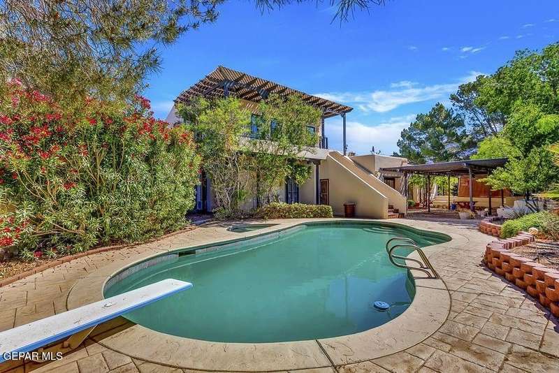 Priced at only $425,000- well below market value -this fixer-upper is ready for the right buyer to bring it back to life. Tucked away on a quiet cul-de-sac in sought-after Chaparral Park neighborhood in West El Paso TX, this custom-built Adobe home offers you over 3,600 sq ft of warmth and character with hand made Saltillo tile throughout the first floor. Featuring 4 bedrooms + office (or 5th bedroom), 4 bathrooms, this Santa Fe-style retreat welcomes you with its cabin-like charm, natural wood accents, and open living spaces. The backyard is an entertainer's dream with panoramic views and a solar heated in-ground pool-perfect for relaxing or hosting gatherings year-round. Upstairs you'll find a private suite with its own living area, wood floors, wet bar, fireplace, and bathroom with exterior access to the pool. Don't miss this rare chance to capture instant equity in one of West El Paso's most desirable communities. Will consider FHA & VA rehab loans!