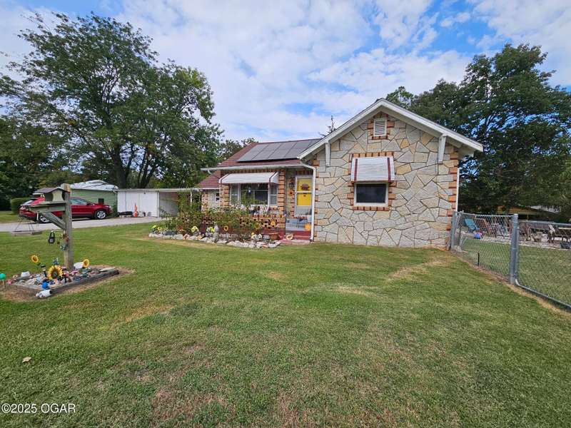 LOCATION LOCATION-Check out this fantastic property! Just 5 minutes from the I-49 junction, making your commute to Arkansas or heading north to Neosho and Joplin a breeze. This charming 1930s solid stone home is full of character- you'll think of a cozy gingerbread house! It features 3 bedrooms and 2 bathrooms, with a living room filled with sunlight thanks to lots of windows and lovely original pocket doors that open to the dining area. The bedrooms are nicely split for privacy. Throughout the years, updates have been made with taste, while still keeping the homes charming original feel.Enjoy outdoor relaxation on this lovely 1/3-acre lot that offers serene winter views of the Elk River-it's just 500 feet from the public river entrance. Plus, there's a handy bonus room off of the carport with its own mini-split, perfect for an office, workout space or a private 4th bedroom for privacy.Save on rising energy bills with recent updates like attic insulation and a sleek $45k solar, HVAC, and mini-split system included in the sale. There's additional storage and an 11x9 ft shop room off the carport, perfect for projects or hobbies.This home could be a wonderful Airbnb, think fishing, kayaking, and swimming with its close proximity to the river- or even a perfect spot to start your own business! Call today to schedule your visit!