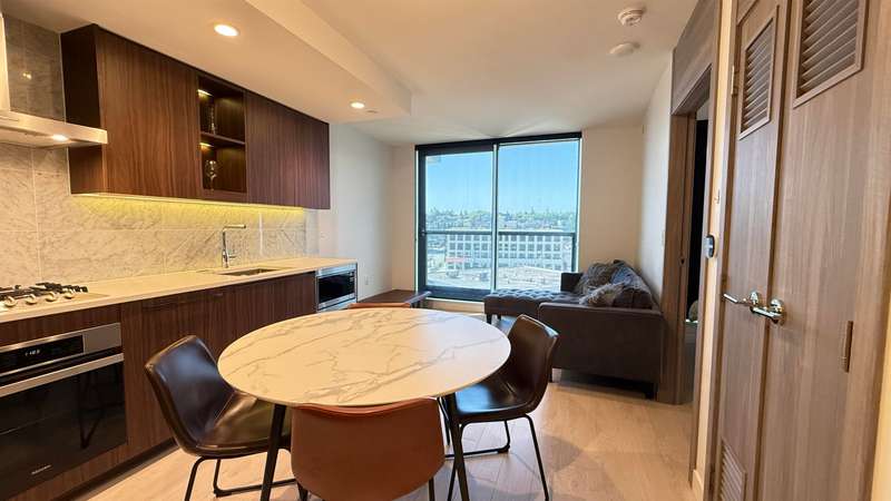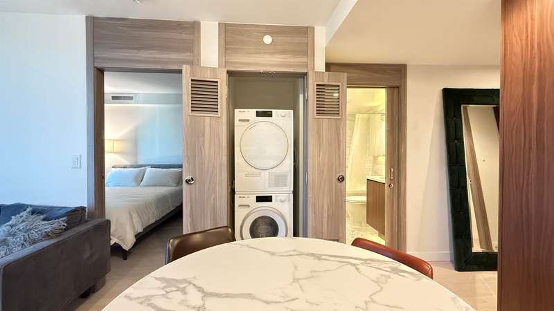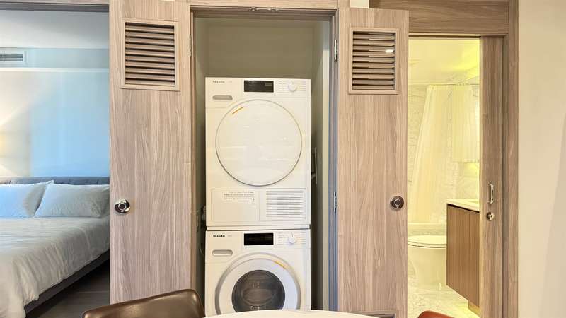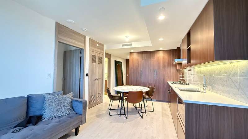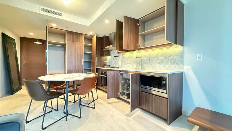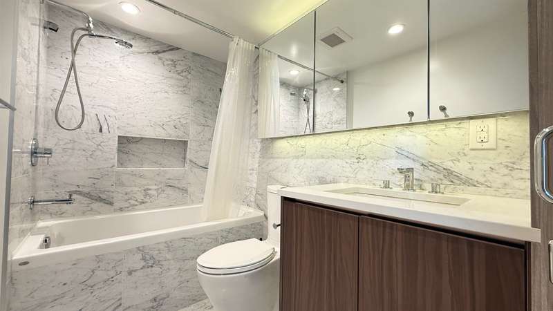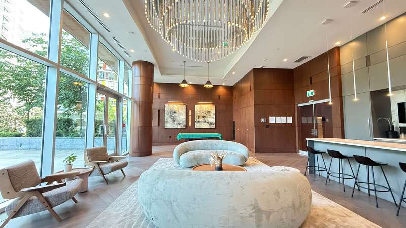 Welcome to Avenue One by Concord Pacific, a luxurious concrete residence in the heart of Olympic Village. This bright south-facing 1 Bed + Den home features floor-to-ceiling windows, a modern kitchen with Miele appliances, quartz countertops, smart thermostats, and high-end finishings throughout. The spacious bedroom includes a custom walk-in closet, and the versatile den is perfect for a home office. Enjoy A/C, Juliette balcony with False Creek views. Building amenities include concierge, fitness centre, lounge with kitchen and pool table, pet spa, community garden, meeting room, library, and a touchless car wash. Steps to the seawall, parks, shops, restaurants, and transit. Ideal for both living and investment. Move-in ready! Furniture included! Open House: Sept 27, Saturday, 2-4 PM