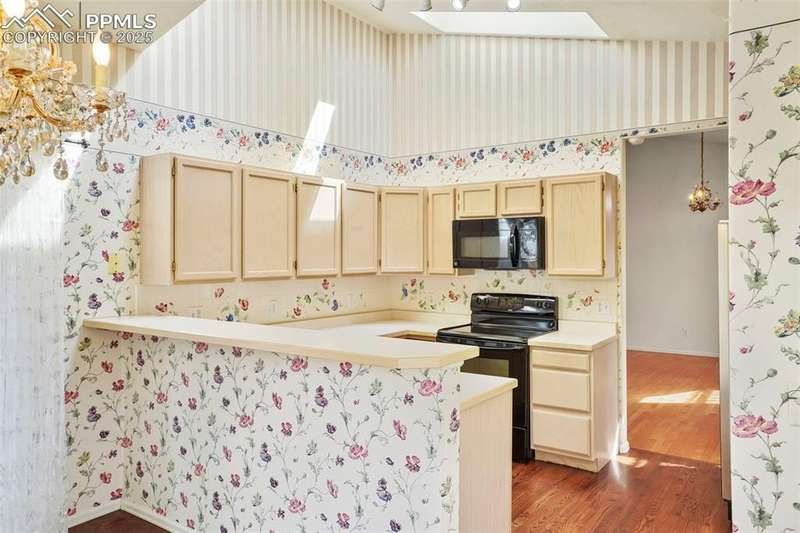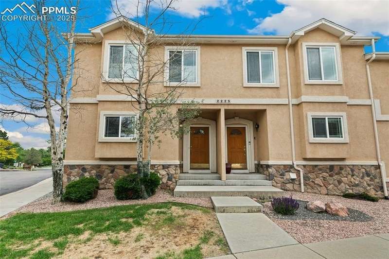 Enjoy effortless living in this charming 3-bedroom end unit condo featuring breathtaking mountain views and abundant natural light throughout. The private primary suite offers a spacious walk-in closet, creating a true retreat. Warm wood floors and a cozy fireplace enhance the inviting living room, while beautiful chandeliers add a touch of elegance throughout the home. The separate dining area is conveniently located off the kitchen and opens to a private paver patio, perfect for morning coffee or evening relaxation. The oversized garage provides ample storage, and the gated community adds an extra layer of security. Ideally situated near shopping and with easy access to Fort Carson, this home is the perfect blend of comfort, style, and convenience.