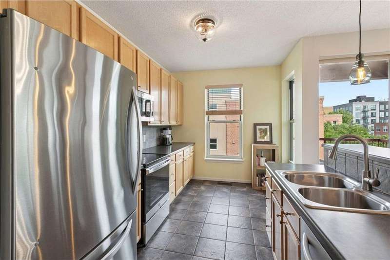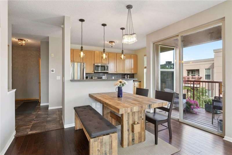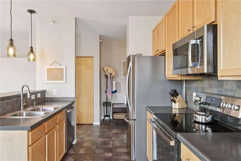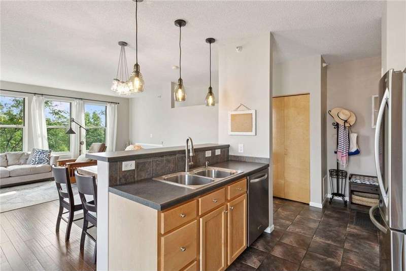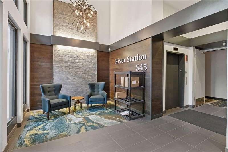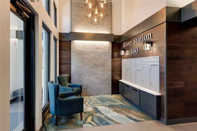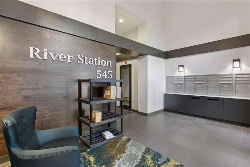 Welcome to one of the most sought-after corner units in River Station, offering over 1,300 square feet of exceptional living space. Enjoy private views from your own deck in this light-filled, top-floor condo. The main level features a generous kitchen with stainless steel appliances, a breakfast bar, and stylish tile flooring with a matching backsplash. Newly installed engineered hardwood floors add warmth to the open living and dining areas, while a tiled half bath completes the space. Downstairs, you’ll find a spacious primary suite with a large walk-in closet, a second bedroom, an additional full bath, and a separate laundry room with a brand-new washer and dryer. Furnace was replaced in 2023 as well as the microwave, oven and refrigerator. This home also includes two heated, underground parking spaces and a storage space located on the same floor as the unit itself. Perfectly located near breweries, restaurants, and just a short walk to the river with its biking, running, and walking trails—this is truly one of the best corner units in River Station, with incredible views and unbeatable convenience.