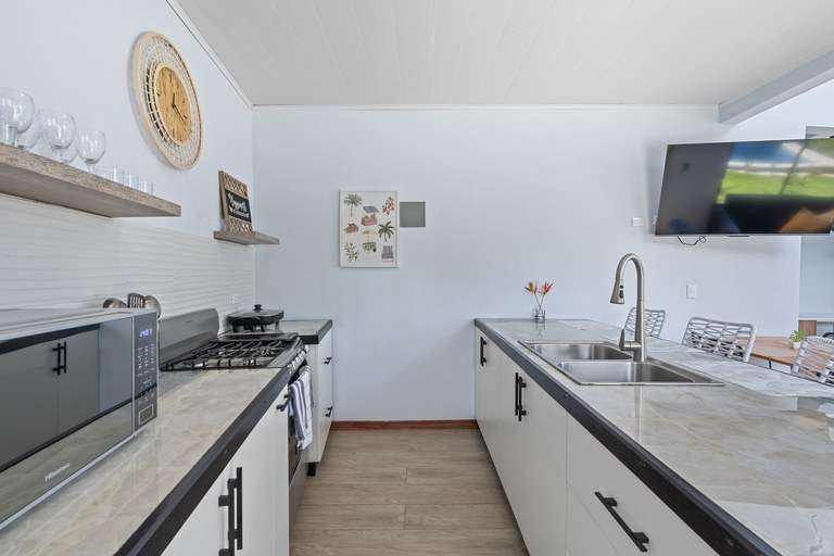 A detached 1-bedroom, 1-bathroom guest house offers additional rental income potential or a welcoming space for visiting family and friends.