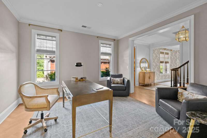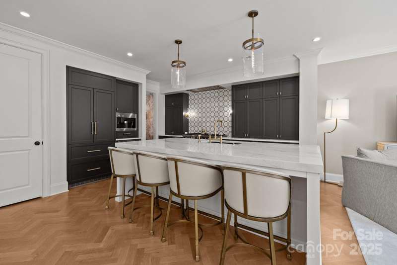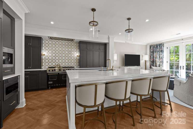 Fabulous end-unit luxury townhome with elevator in Myers Park! A floor plan that seamlessly blends living, dining, and entertaining spaces, perfect for both everyday comfort and hosting. The open kitchen complete with high-end appliances, including a Viking Gas Range & built-in Miele coffee machine along with sleek quartz countertops & a spacious island opens into a great room & breakfast/sitting area with wonderful natural light. A stylish wet-bar connects the great room with a front living or office area. The primary suite is a retreat featuring a spa-like bathroom with dual vanities, soaking tub, walk-in shower & spacious closet. Each bedroom offers en-suite baths and ample closet space. The 3rd level has a full bathroom providing flexibility for bedroom, bonus/exercise or office space. Step outside onto a private patio with outdoor fireplace overlooking the community gardens & 3-car detached garage!