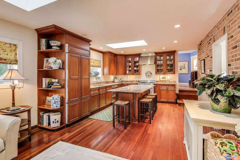 Elegant Brick & Stone Sauganash Step Ranch in Prime Location. Welcome to this beautifully maintained, corner step ranch nestled on a tranquil, tree-lined street in the heart of Sauganash-one of Chicago's most sought-after neighborhoods. With striking Lannon stone and brick exterior, this home boasts timeless curb appeal and a serene setting near two low-traffic, dead-end streets. Just steps from Sauganash Park, top-rated Sauganash Elementary and Queen of All Saints School, the Sauganash Trail, and the North Branch Forest Preserve, this location offers an unbeatable mix of urban convenience and natural beauty. Commuters will appreciate easy access to I-94, Forest Glen Metra, and neighborhood favorites like Whole Foods, Starbucks, Alarmist Brewery and more. Inside, you'll find a thoughtfully designed floor plan featuring walnut and oak hardwood floors, a formal living and dining room, and two dedicated home office areas-ideal for remote work/work from home. Retreat to the timeless spa-inspired fully upgraded bathroom, showcasing marble finishes and high-end Kohler fixtures complete with Rainhead shower, soaker alcove bathtub, Ralph Lauren triple sconce, AERIN Lighting and large built in grand recessed medicine cabinet mirror. The chef's kitchen is the heart of the home and includes: KitchenAid 36" built in wood paneled refrigerator, Heartland Metro gas stove, DSC/Fisher Paykel dual dishwasher, Dacor built in microwave, custom cherry and glass cabinetry, and large island. The kitchen has seamless flow into the cozy family room, complete with wood-burning fireplace. Waterford light fixtures in the main hallway and primary bedroom. The finished basement offers a second built in home office spacious recreation room/play space, half bath, and dedicated laundry area with GE HE washer and dryer and sink. The basement includes a POTENTIAL FOR FOURTH BEDROOM. Additional features include: two Zoned gas-forced air & central A/C systems; Attached 2.5-car garage; and outdoor patio- perfect for friends and family entertaining. Roof 2018, HVAC 2021,Sump pump 2025. A rare opportunity to own a move-in-ready home in Sauganash!