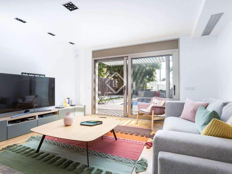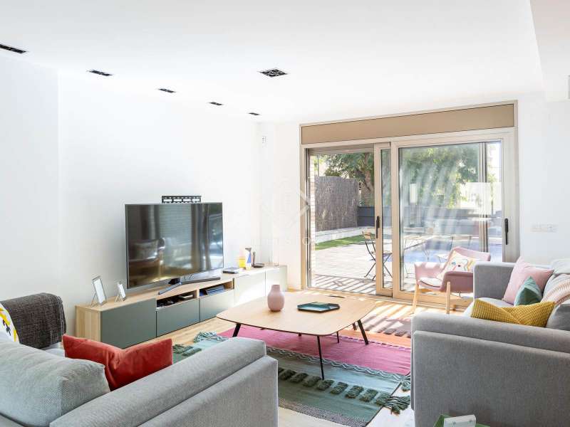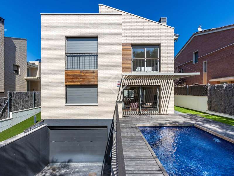Fantastic modern house with a built area of 386 m² on a 453 m² plot. The house was built in 2019 and is fully equipped to move into. The layout of the house consists of 2 levels plus an extra level in the basement. On the main floor, the house offers a spacious living room with space for dining and with several direct access to the garden and pool. The fully equipped kitchen is also connected to the dining room and also has direct access to the back garden where the barbecue is located. On the ground floor, the house has a room which can be used as a bedroom or an office, and also a bathroom with a shower. On the first floor we find the night area. On the north side there are 2 double bedrooms with built-in wardrobes that share a complete bathroom and on the south side, a double ensuite bedroom with its own complete bathroom and the master bedroom with a huge complete bathroom and a dressing room. Finally, in the basement, there is a very large parking space for three cars, a laundry area, a machine room and a room that can be a sixth bedroom or multipurpose room. It is important to mention that all floors have lift access. The house incorporates an alarm system, electric blinds system and offers the option of acquiring the house with all the furniture. Contact us for more information or to arrange a viewing.