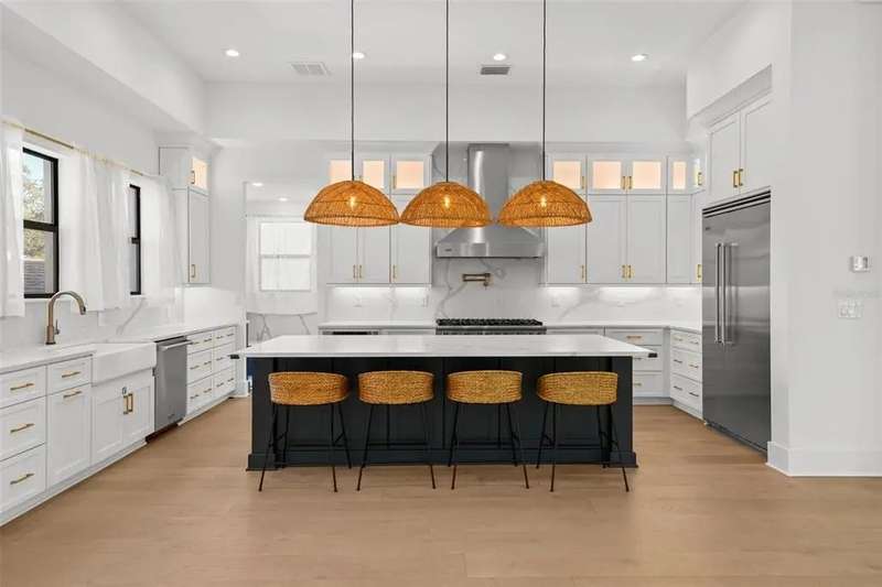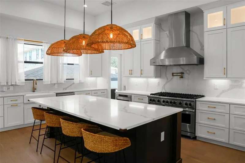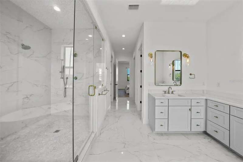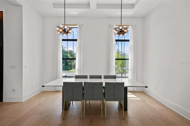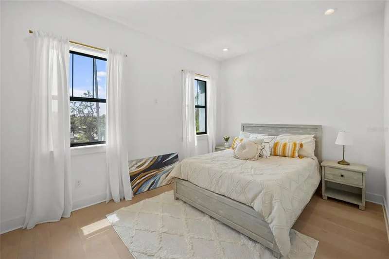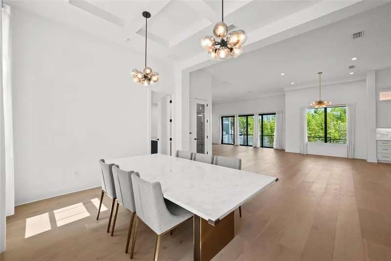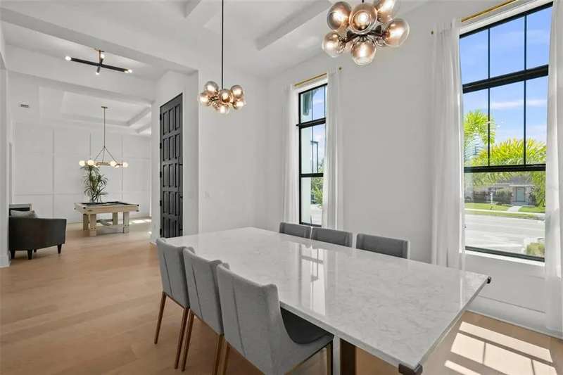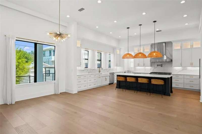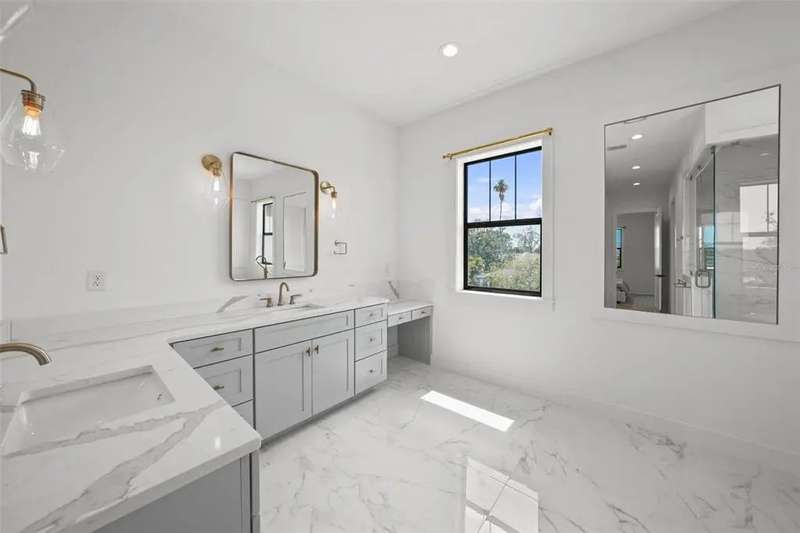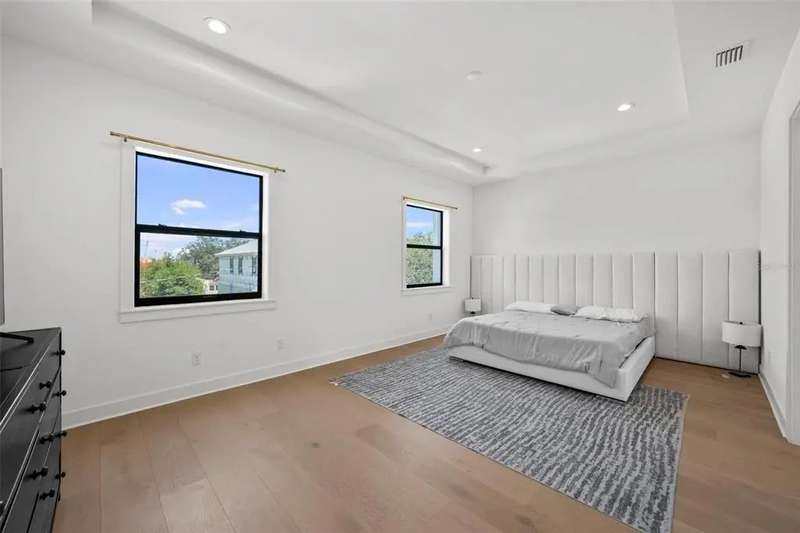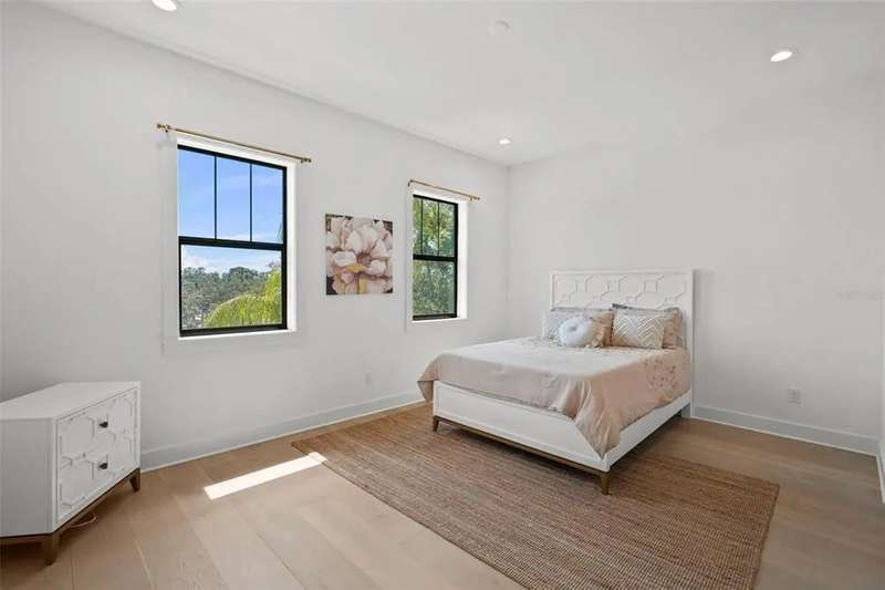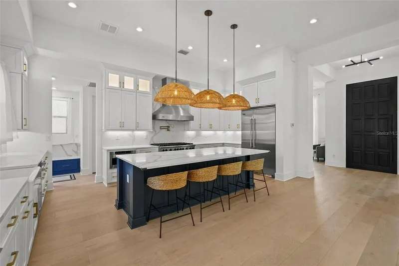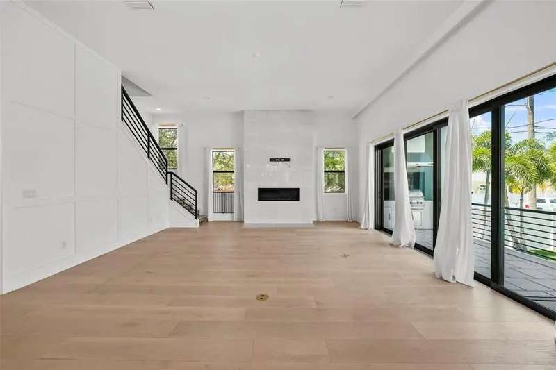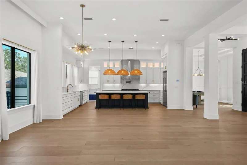 Built in 2022, this stunning 5-bedroom, 5.5-bath, 4,451 sq. ft. pool home offers modern luxury just steps from Davis Islands Village and minutes from Downtown Tampa. Elevated 12 inches above FEMA base flood elevation, the home remained high and dry with no water intrusion during both Hurricane Helene and Hurricane Milton—providing rare peace of mind. Designed with an open floor plan, the home features 12’ ceilings, wide-plank French oak flooring, and large impact-rated windows throughout. The gourmet kitchen includes Viking appliances, quartz countertops, walk-in pantry, and custom cabinetry. The great room showcases a linear gas fireplace and a climate-controlled wine room. A first-floor guest suite with private bath and dry bar offers ideal flexibility for use as a home office or in-law suite. Upstairs, the spacious primary suite includes two custom walk-in closets and a luxurious bath with a vessel tub and oversized shower. Three additional en-suite bedrooms and a bonus room complete the second floor. Enjoy year-round outdoor living with a covered lanai, built-in summer kitchen, and a resort-style pool with sun shelf and spillover spa. Additional highlights include a 2-car garage, tankless water heaters, upstairs storage room, and custom closet systems throughout.