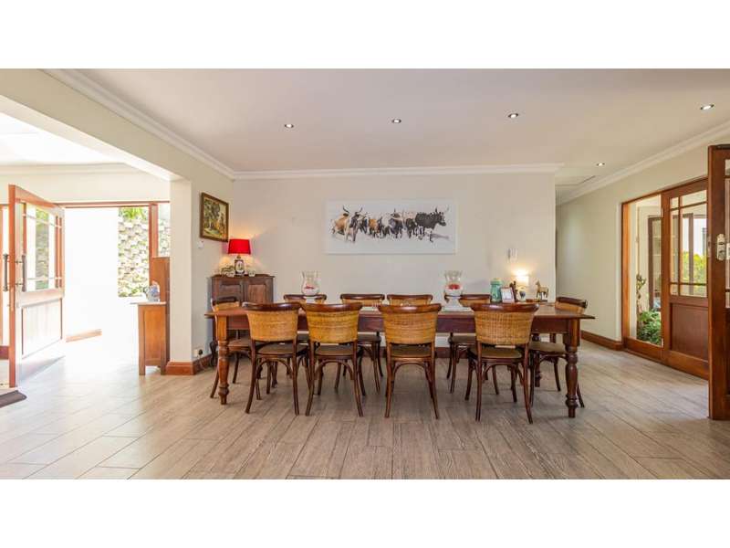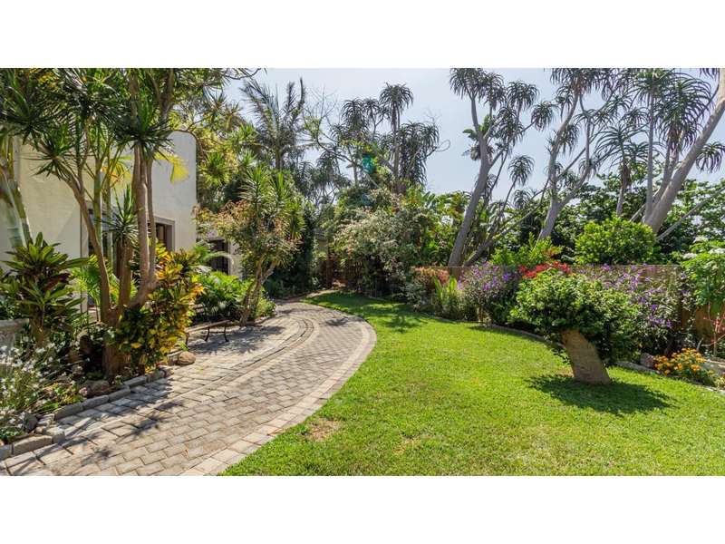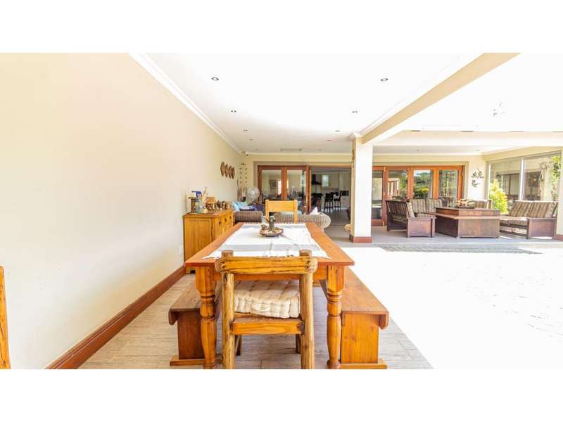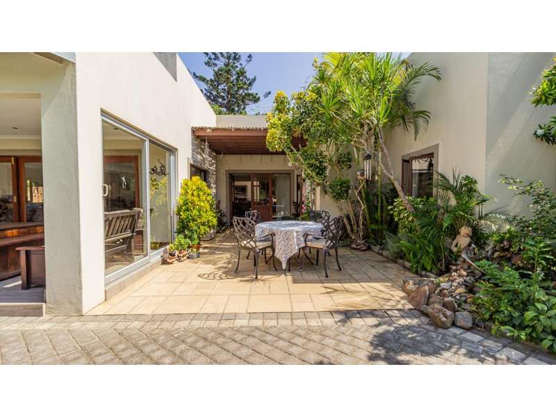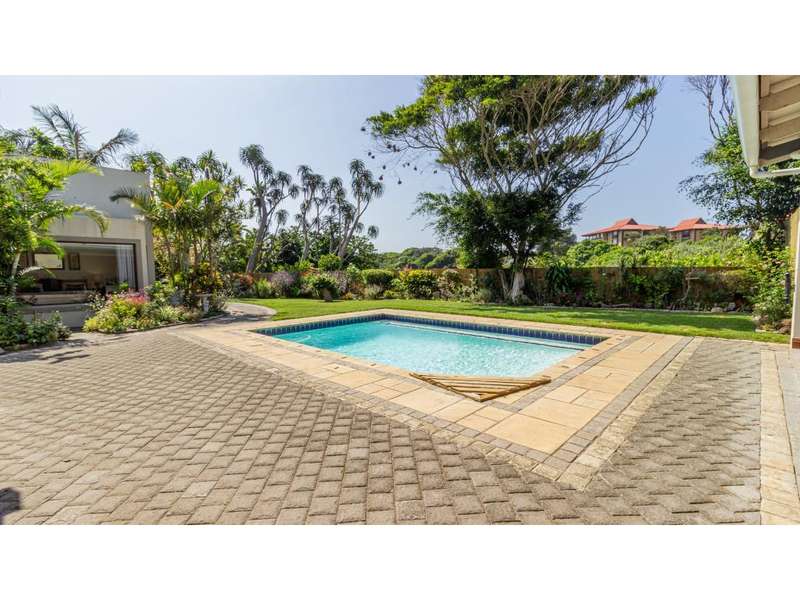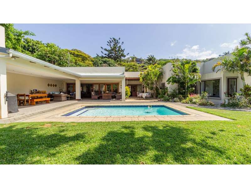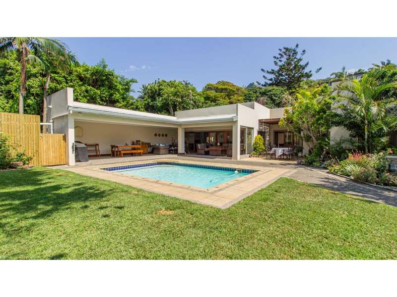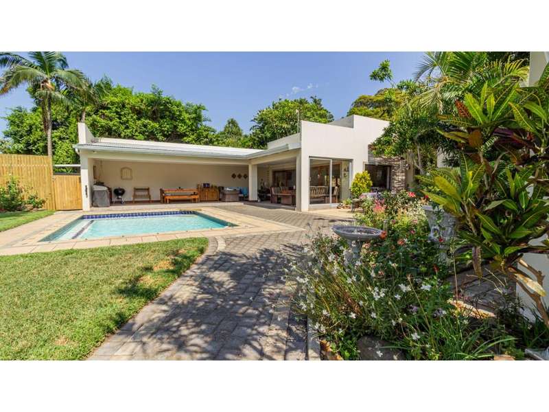 A Gorgeous, Modern Home, Just 400m from the Beach A welcoming family home, so wonderfully located, with generous living areas, ample bedrooms and incredible gardens! Enter into a majestic entrance hall, which flows into the enormous, open-plan living room, which features multiple living areas leading out to a beautiful, protected, covered patio and to the exquisite swimming pool. The gorgeous kitchen offers quartz tops; ample cupboard space with a convenient prep bowl to one side. A scullery is located beyond the kitchen which offers space for all appliances, including an additional fridge/freezer. This home offers 5 lovely bedrooms, 2 of which offer en-suite bathrooms and the remaining 3 bedrooms share a full bathroom. Some of the bedrooms overlook the magnificent garden and swimming pool area. This special home offers a double garage attached to the home, with an additional garage in the yard which is currently used as a storage area. There is an automated gate and a full alarm system.