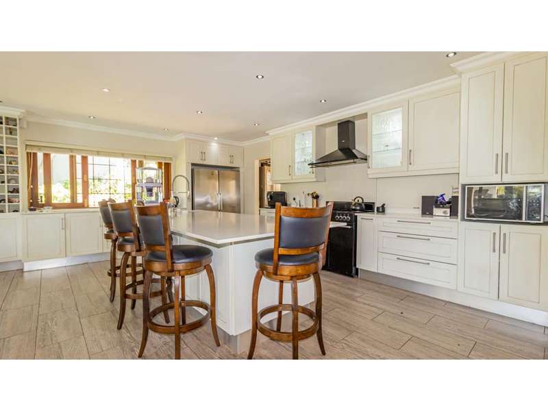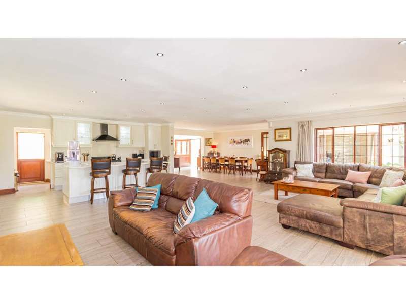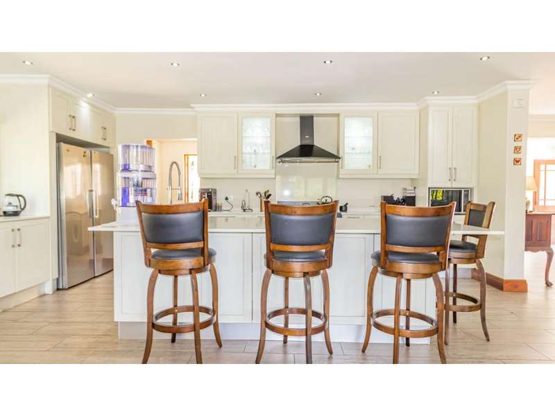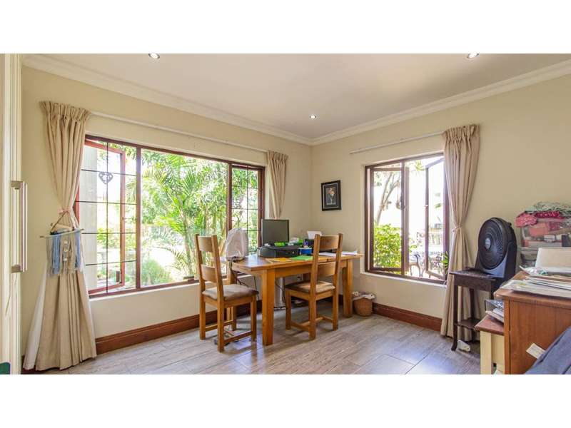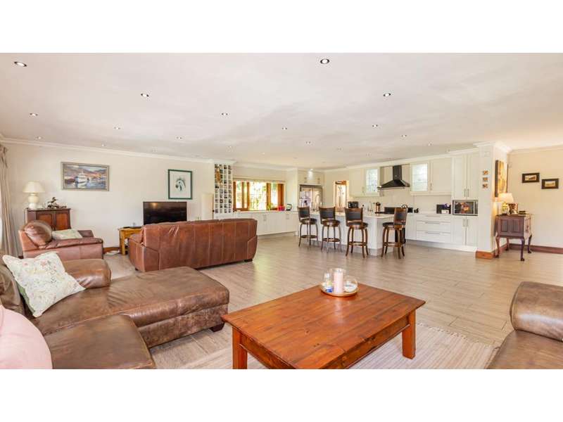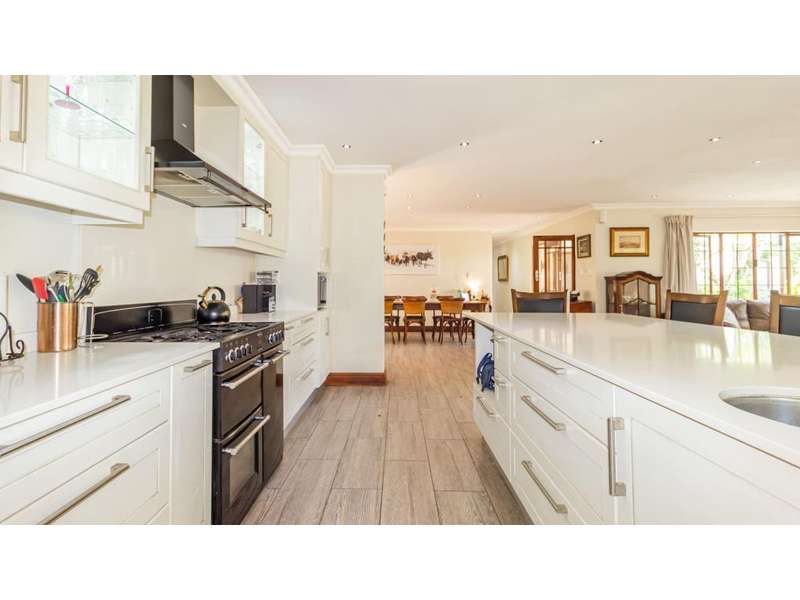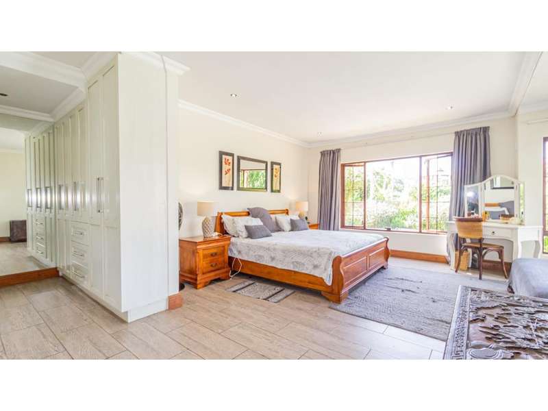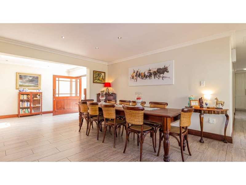 A Gorgeous, Modern Home, Just 400m from the Beach A welcoming family home, so wonderfully located, with generous living areas, ample bedrooms and incredible gardens! Enter into a majestic entrance hall, which flows into the enormous, open-plan living room, which features multiple living areas leading out to a beautiful, protected, covered patio and to the exquisite swimming pool. The gorgeous kitchen offers quartz tops; ample cupboard space with a convenient prep bowl to one side. A scullery is located beyond the kitchen which offers space for all appliances, including an additional fridge/freezer. This home offers 5 lovely bedrooms, 2 of which offer en-suite bathrooms and the remaining 3 bedrooms share a full bathroom. Some of the bedrooms overlook the magnificent garden and swimming pool area. This special home offers a double garage attached to the home, with an additional garage in the yard which is currently used as a storage area. There is an automated gate and a full alarm system.
