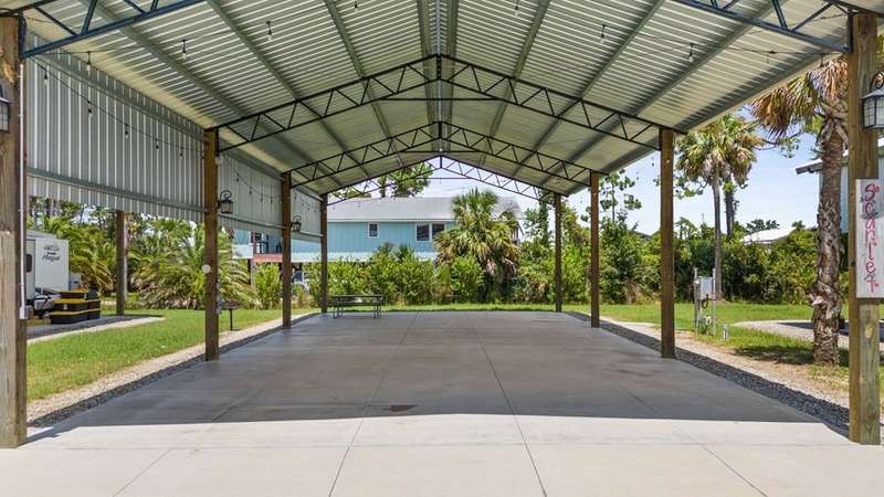 Turn-key RV lot available now in the sought-after Bay Colors subdivision near Simmons Bayou. This fully improved property is ready for immediate use, with sewer, water, and 20/30/50 amp power hookups already installed. Zoned for mixed use with no HOA or dues, it's ideal for full-time living, weekend escapes, or nightly rentals—offering excellent flexibility and long-term value. At the heart of the lot is a custom-built 30' x 60' all-metal pole barn with reinforced Z purlins and roof cables for maximum wind resistance. A 7-inch thick concrete pad (well above the standard 4”) supports large RVs without cracking. The space is thoughtfully equipped with extra outlets, a hose bib, a north-facing metal sunshade extension, an upgraded vinyl picnic table, and a concrete-set outdoor grill. String lights, lanterns, and a hand-painted barn name “Scarlet” add charm and character. Additional features include a beautifully finished rock driveway, green grass, natural landscaping, and underground cable/internet installed by Consolidated Communications. With owner financing available to qualified buyers and a healthy down payment, this is a rare opportunity to own a ready-to-enjoy RV property in one of the coast's most desirable areas. Just bring your RV and enjoy coastal living from day one.