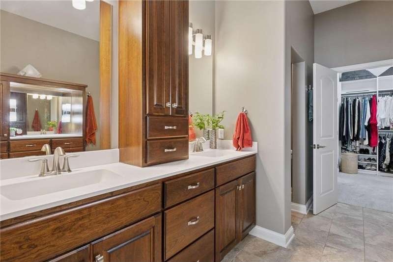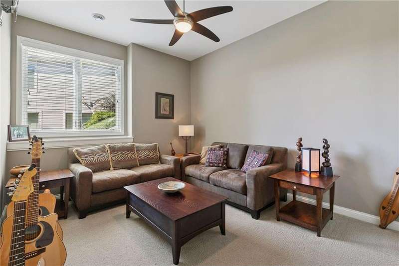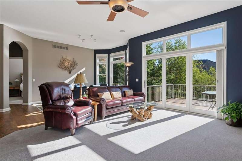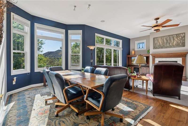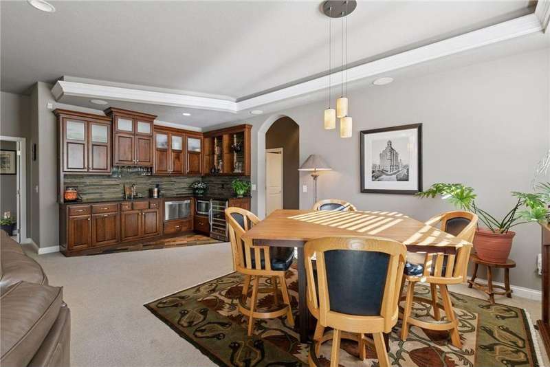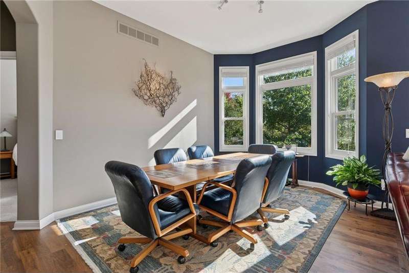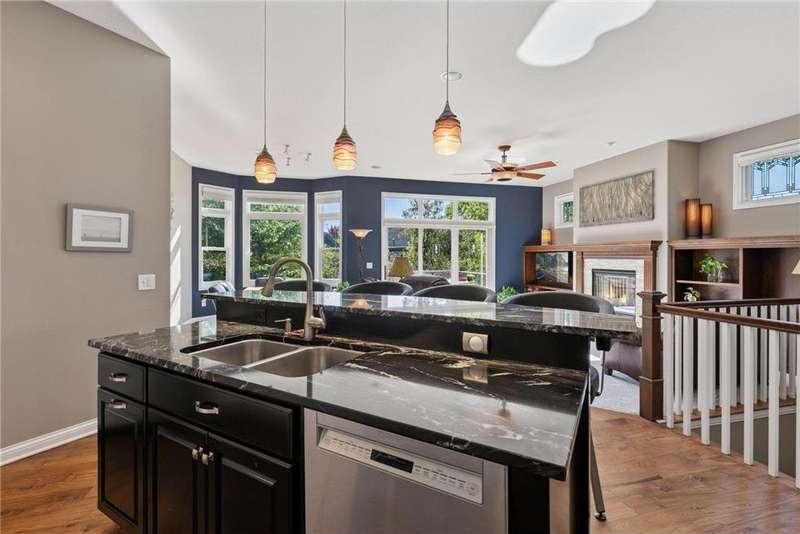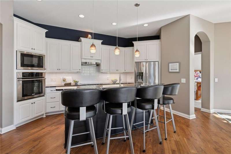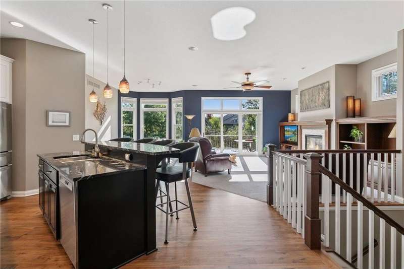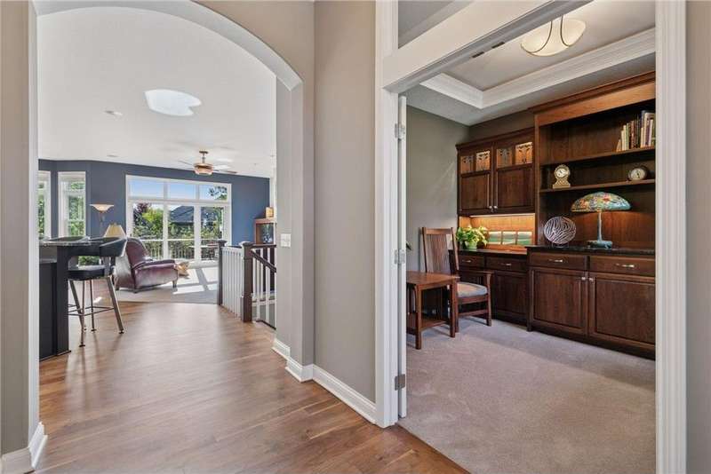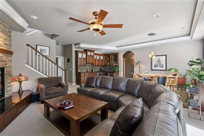 Nestled in the prestigious Bellante neighborhood, this twinhome is the epitome of luxury and convenience. Open and spacious rambler-style floorplan with all the living on the main level. Enjoy soaring 10’ ceilings, gourmet kitchen with enameled cabinets and gorgeous black walnut hardwood floors. the oversized garage & many amenities nearby. A main level living concept sets this home apart, featuring the primary bedroom, office, and laundry room all on the same floor. Walls of windows allow for so much natural light to shine on in! The generous sized primary suite come complete with a custom tiled walk-in shower, double sinks and custom makeup vanity with built-ins. Conveniently located laundry room off the primary suite w/upper and lower cabinets. Step out onto the maintenance-free deck for a serene outdoor escape. Every detail reflects meticulous craftsmanship, from the custom cabinetry to the hardwood flooring. The lower level offers 2 BR bedrooms, bathroom, & an expansive family room with fireplace and bar with dishwasher, wine fridge and microwave. Enjoy the benefits of association-maintained living where you can turn the key and go. Overlapping showings allowed. Agents and buyers to verify all data and measurements.