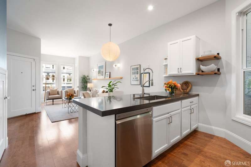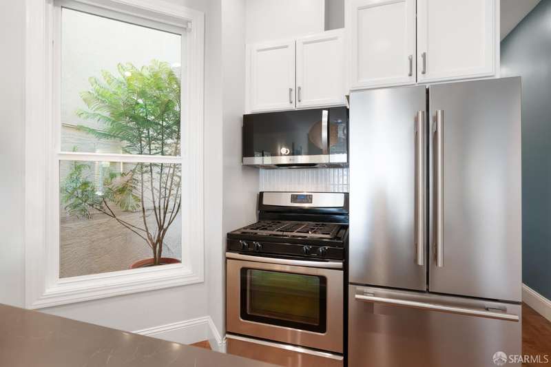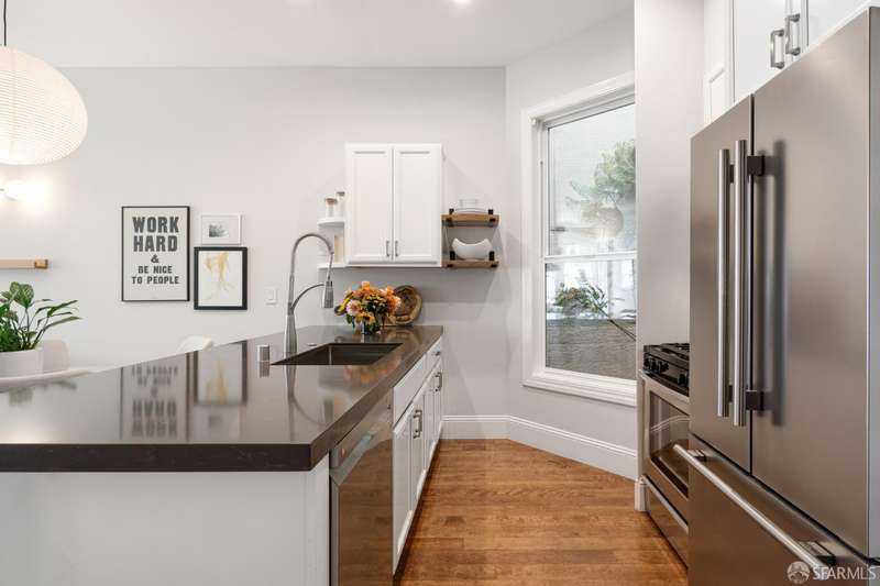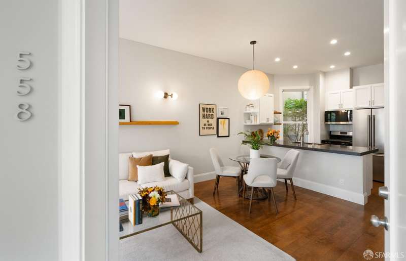 558 Central is a thoughtfully designed two-bedroom, two-bathroom home with exceptional natural light and high ceilings in a boutique, four-unit building. The property was tastefully remodeled and features a light-filled living room & dining area, chef's kitchen with an oversized peninsula, top-of-the-line appliances, ample storage, and a full pantry. The second bedroom is a perfect home office or nursery, and toward the rear of the property, you'll find the in-unit washer and dryer, a second bathroom, and a luxurious primary suite overlooking the private patio and shared garden. 558 Central is located in the heart of NOPA, known for its flat terrain, and offers access to the Panhandle & Golden Gate Park two blocks away, as well as the endless food options and nightlife on Divisadero Street.