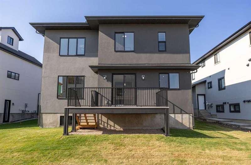 **For a limited time the builder is offering $20,000 in buyer upgrades throughout home (excluding appliances)** Welcome to the brand new development of Knightsbridge in Cambridge Park. Minutes away from access to Stoney Trail and East Hills shopping centre. The Whitehaven is a stunning estate home designed to blend luxury and practicality. Set on a generous 6027 sq ft lot, this home provides an expansive backyard and a side-drive triple car garage. These are not your typical cookie cutter homes. With 3,203 sq ft of living space, this custom-built masterpiece features 5 spacious bedrooms and 4 beautifully designed bathrooms, offering ample room for family and guests. This home is loaded with upgrades including: Main floor full bath, Jack and Jill ensuites for added convenience, High ceilings & a Spice kitchen to enhance your culinary experiences. Inside, the main floor exudes elegance with rich hardwood flooring and 9 ft ceilings with 8 ft doors, and striking black-framed windows that invite natural light. The gourmet kitchen is a chef’s dream, complete with an oversized island, a secondary spice kitchen, sleek stainless steel appliances. An open concept formal dining and living area set the stage for gatherings. The main floor also includes a flex room as well as a 4 pc bathroom. The primary suite on the upper floors is a true sanctuary with a freestanding tub and a custom-built closet. The home’s thoughtful design continues with 3 more generous sized bedrooms on the second floor, a bonus room for entertaining, a Jack & Jill ensuite bathroom for convenience, as well as a second floor laundry room. . Step outside to enjoy a completed rear deck with steps leading to a private outdoor oasis. This home also offers a triple attached garage allowing plenty of space for extra parking. This community is within minutes to Calgary, Chestermere, and East Hills, 18 minutes to Downtown Calgary, and provides quick access to Stoney Trail, Highway 1, and McKnight Blvd making it easy to get anywhere in and around the city. Located near shopping centres, Costco, public and private schools, Khalsa school's, parks, and many other amenities, while still offering quiet country-living with wide open green spaces, walking paths, and playgrounds.
