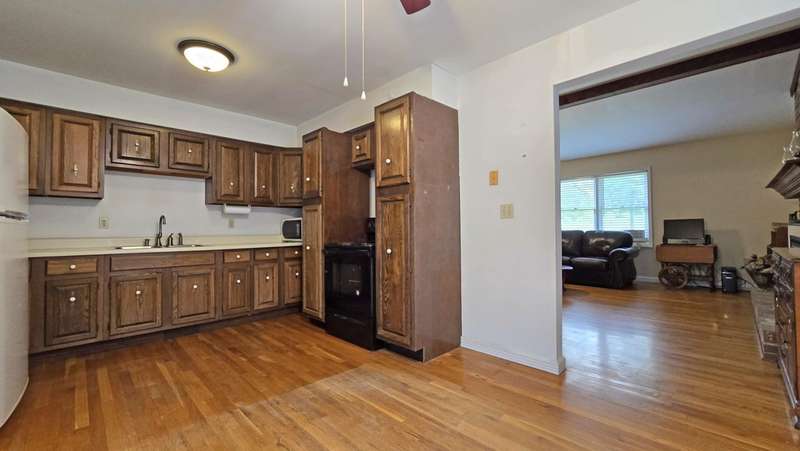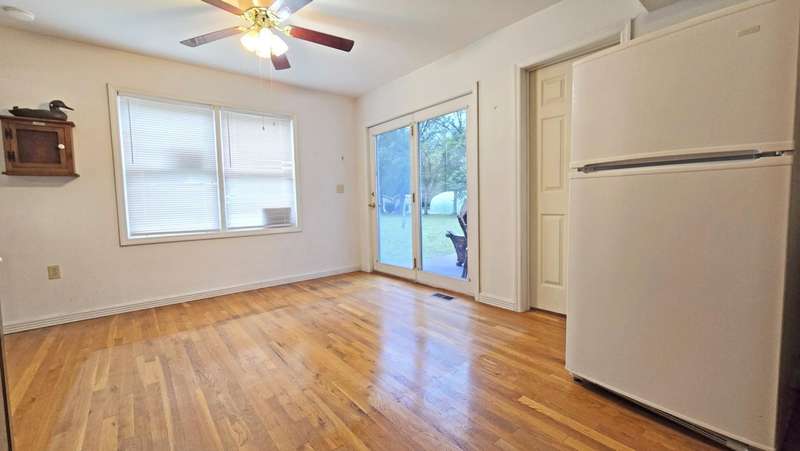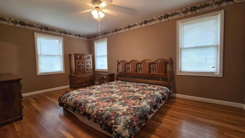 Escape to your own slice of peaceful countryside! This charming 1,400 sq. ft. ranch house is ready for its new owners. Inside, you'll find a comfortable layout featuring 3 bedrooms and 1 full bathroom. The heart of the home is a spacious eat-in kitchen, perfect for family meals, that flows into a large living room. Imagine cozy evenings by the impressive masonry fireplace equipped with a modern wood-burning insert for efficient warmth. The entire home boasts beautiful, easy-to-care-for hardwood floors throughout. But the real treasure is outside! The home sits on a generous 5.5 acres m/l of level land, offering endless possibilities for gardening, hobbies, or just enjoying nature. A barn provides great storage or workshop space. Best of all, the property features a bounty of more than 50 walnut trees that the owner carefully planted years ago, along with Chestnut, Pecan, Pear, Apple trees, and maybe a Cherry tree with all creating a beautiful and shaded natural environment. Additional land available adjoining this tract. See attached document for deed restrictions. Additional Land available see ML#25502664