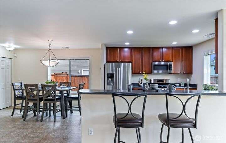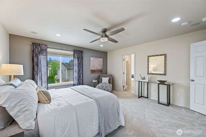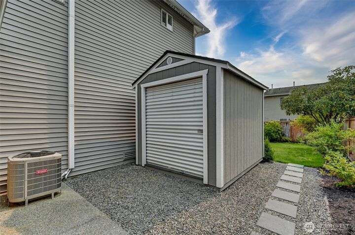 Welcome to The Farm at Woods Creek! This well-maintained 3-bedroom, 2.5-bath home is completely turn-key and shines with pride of ownership. Tucked near the end of a quiet cul-de-sac, it offers a rare 3-car garage with heater, a storage shed, and irrigation for easy-care landscaping. Enjoy the comfort of air conditioning, brand-new carpet, newer roof and gutters, and a fully fenced backyard with a beautiful trellis—perfect for pets, play, and relaxing outdoors. Just minutes from Hwy 2 access, top shopping, dining, and a movie theater. The Farm at Woods Creek blends the best of tranquil living with unbeatable accessibility. “Movie starts in 10 minutes? No problem…we’ll be there in 5!”