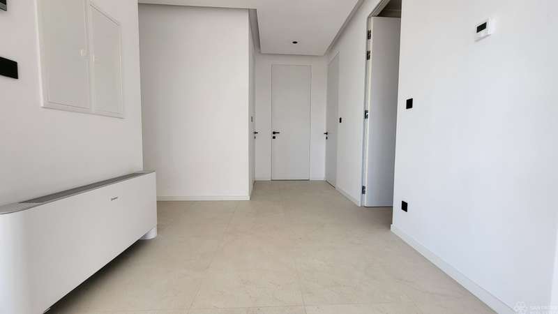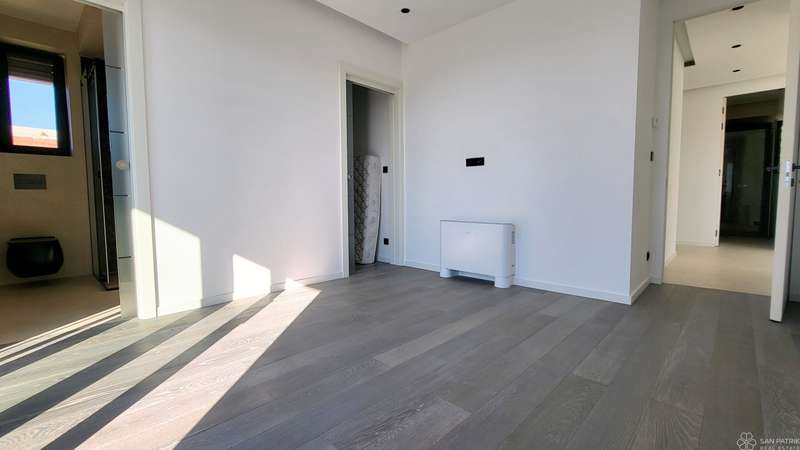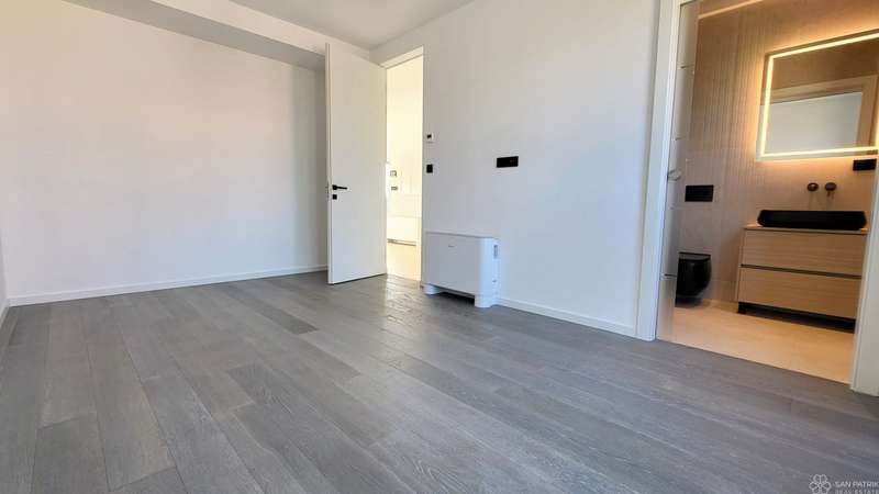 The penthouse with a total living area of 121.66 m2 consists of an entrance hall, a spacious living room with kitchen and dining room, three bedrooms, three bathrooms, a walk-in closet, a storage room and a covered and uncovered terrace. The penthouse is sold unfurnished. The special value of this property is the roof terrace of 89.08 m2 with a sundeck. In addition, it has a storage room in the basement of 3.40 m2, and two parking spaces.