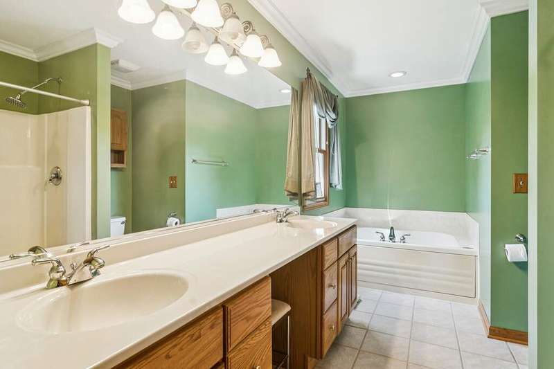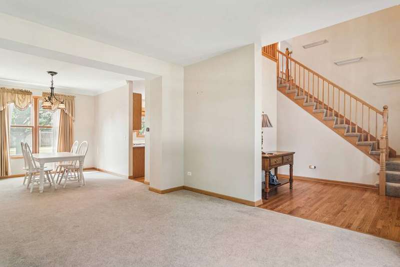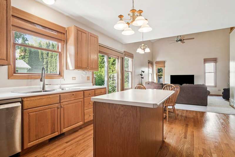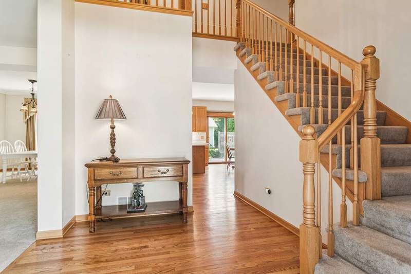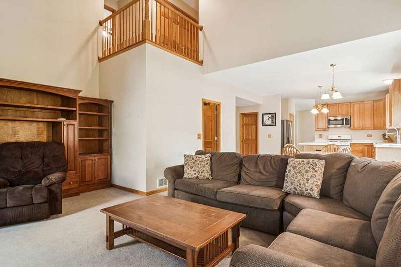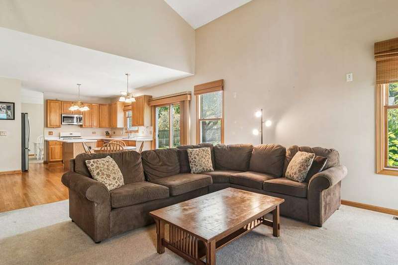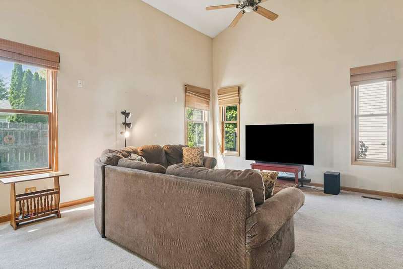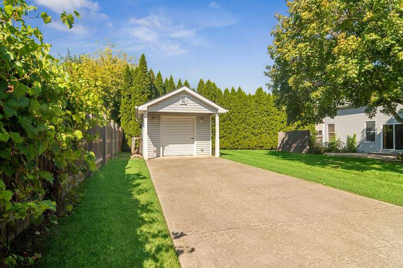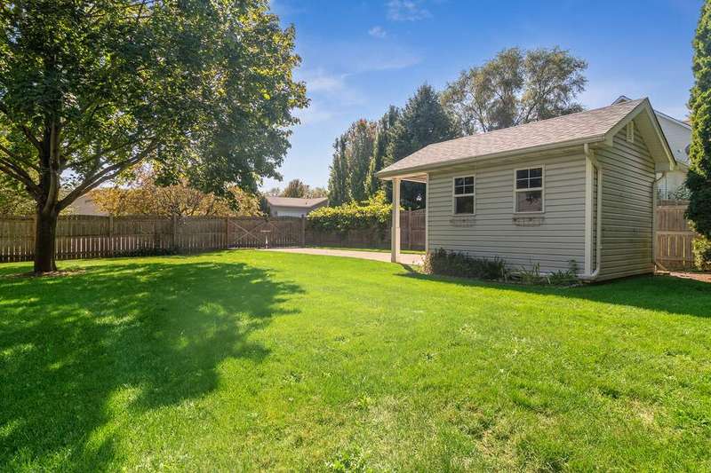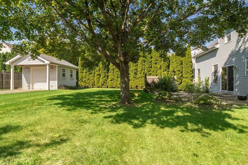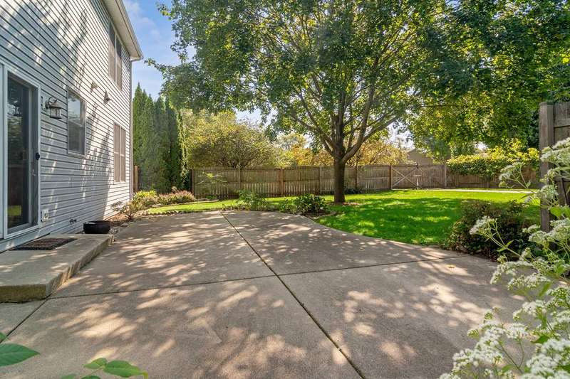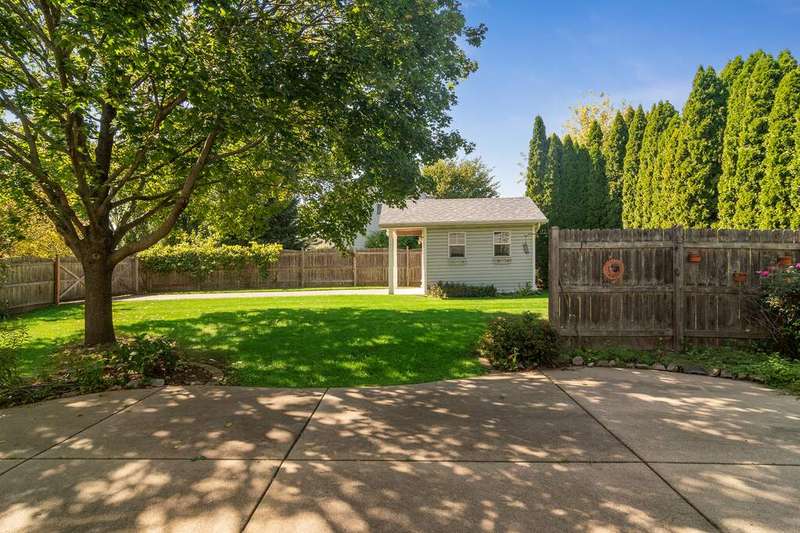 This custom built residence boasts over 2,400 sq ft of thoughtfully designed living space in a highly sought-after neighborhood. As you enter through the inviting two-story foyer, you'll be greeted by the spacious living room, with plenty of natural light. The seamless flow into the dining room creates a formal setting perfect for gatherings. Experience the joy of open concept living as the kitchen seamlessly connects to the vaulted family room, making it the ideal space for both daily life and entertaining. The kitchen features a generous island with extra storage, plenty of cabinetry, and an extra space for casual dining. The expansive family room is sure to become the heart of your home, providing a warm and welcoming atmosphere for family and friends. For added convenience, the drop zone/mud room off the garage offers a practical solution to keep your space organized. Step outside from the kitchen to your fully fenced backyard, where you can unwind on your private patio with an evening glass of wine. You'll also appreciate the additional shed with its own driveway, perfect for extra vehicle parking or additional storage needs. Venture upstairs to discover the primary suite, complete with a double vanity bathroom, walk-in shower, and spacious closet. Three additional bedrooms, a full bathroom, and laundry facilities complete this second level, ensuring that everyone has their own comfortable space. Don't miss the full basement, offering endless possibilities to create your own recreation area, gym, or home office - the choice is yours! Additional updates include: AC ('23), furnace ('23), water heater ('21), washer/dryer ('22), refrigerator ('21), microwave ('25), dishwasher ('24), newer roof, solid 6 panel doors and beautiful hardwood floors.