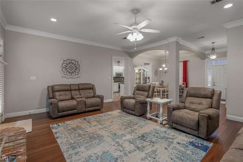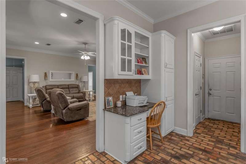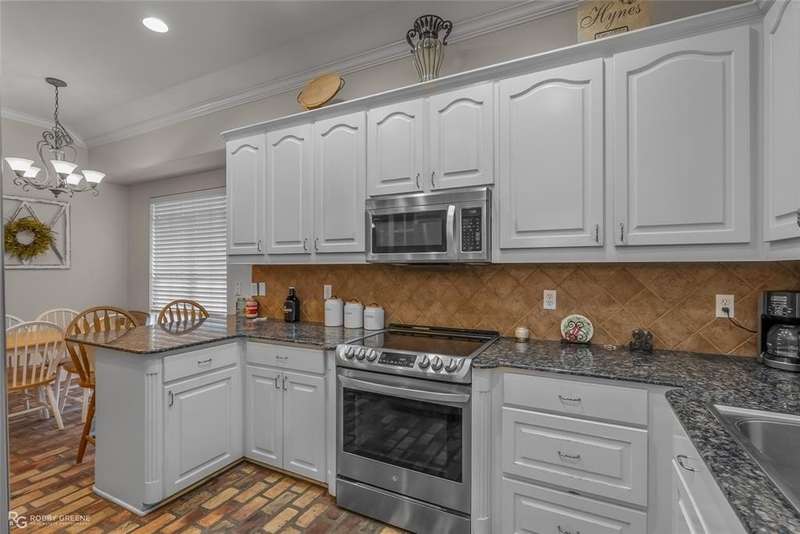 Welcome to this charming 3-bedroom, 2.5-bathroom home nestled in the desirable Brunswick Gardens neighborhood! A beautiful front porch with classic columns sets the tone for the warm and inviting interior. Step inside to a spacious living room featuring wood flooring and a cozy bricked fireplace, seamlessly flowing into a generous dining area perfect for entertaining. The kitchen boasts granite countertops, all stainless steel appliances, a charming brick floor, a casual dining area, a built-in desk, and convenient access to a half bath. The luxurious master suite offers a spa-like ensuite with double vanities, a jetted tub, a walk-in shower, and dual walk-in closets. Two additional bedrooms and a full bath are also found in the home, offering plenty of space for family or guests. Outside, enjoy a two-car garage, a back patio ideal for relaxing or grilling, and a large backyard perfect for play or gardening. This home combines comfort, style, and functionality in a beautiful neighborhood setting! Call me today for a private showing!