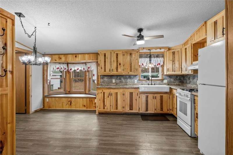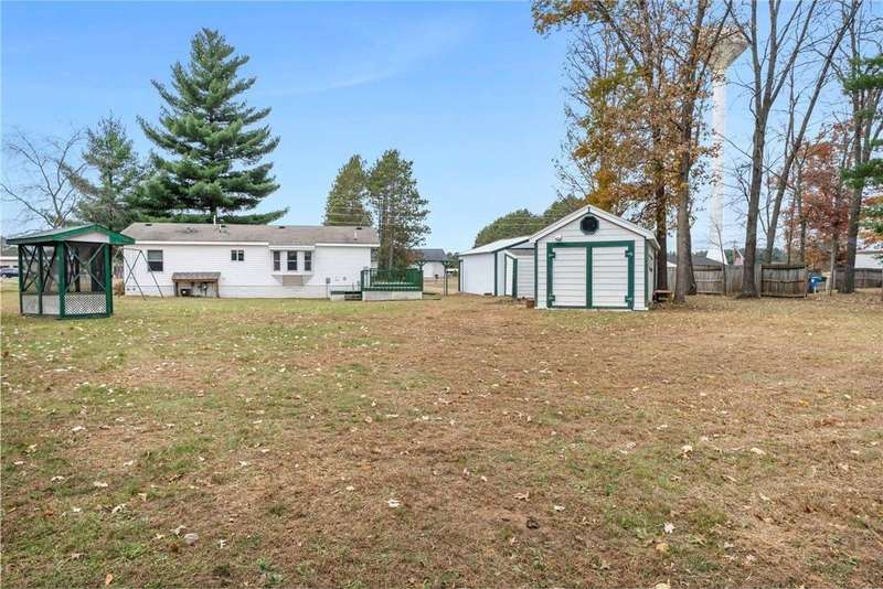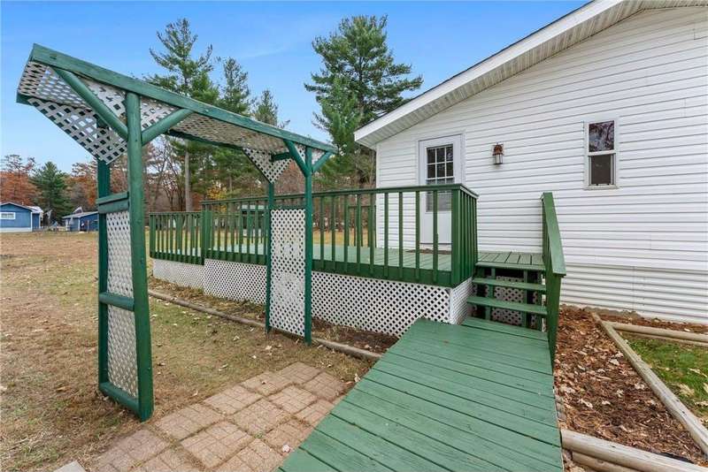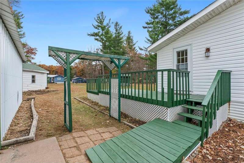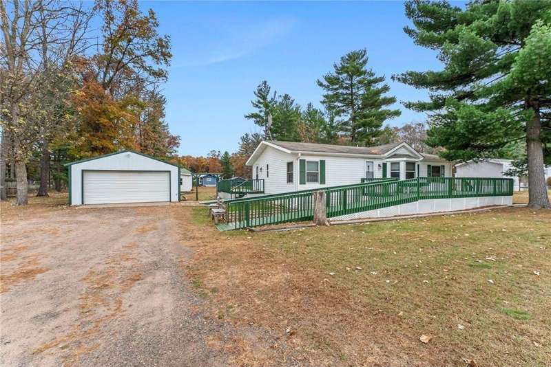 Welcome home to this beautifully maintained 3BR/2BA home on a spacious .53-acre lot in the village of Grantsburg! Enjoy the ease of single-level living with an open layout and warm wood accents throughout. The living room offers vaulted ceilings and a bay window that fills the space with natural light. The kitchen stands out with solid pine cabinets, a farmhouse sink, and a large dining area with another bay window. Features include big closets, modern lighting, and all windows replaced within the last 10 years. Outside, enjoy a huge front deck with ramp access, a 24x22 2-car garage with a steel roof, and a 32x12 heated workshop-perfect for hobbies or extra storage. The backyard offers plenty of space for entertaining, gardening, or simply relaxing under the trees. Convenient in-town location near schools, parks, and shopping makes this property a must-see!