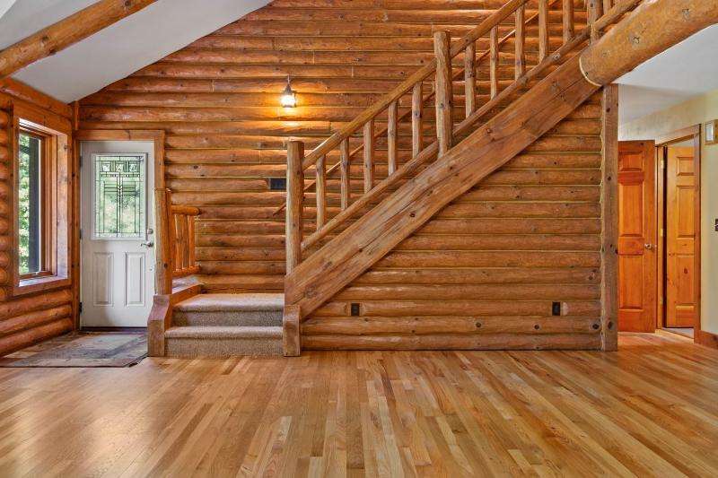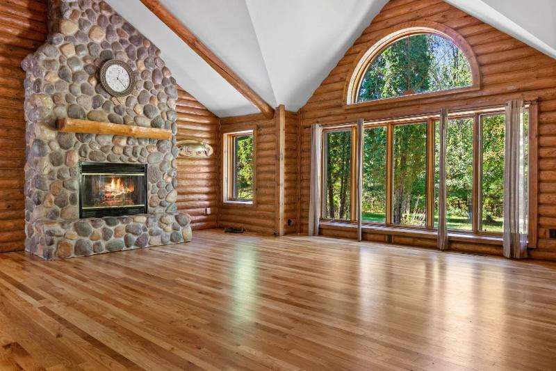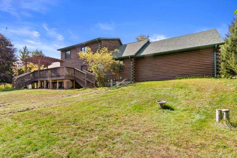 Nestled in a serene, secluded enclave embraced by towering trees and teeming with wildlife, this breathtaking log home is a sanctuary of rustic elegance, ready to welcome its new owners. As you approach, the natural beauty of the surroundings captivates, with dappled sunlight filtering through the canopy, casting a warm glow on the home's rich, hand-hewn log exterior. Recently sealed to preserve its timeless charm, the property exudes a sense of enduring craftsmanship. Step inside to discover a grand interior where soaring volume ceilings create an airy, open ambiance, amplifying the sense of space and tranquility. Gleaming new carpeting stretches across the floors, offering a soft, modern touch beneath your feet. The main level master suite is a private retreat, complete with generous space, luxurious finishes, and direct access to the home's breathtaking views. Expansive windows frame every room, inviting the outdoors in and showcasing panoramic vistas of lush greenery and natural splendor from every angle. Ascend to the upper level, where well-appointed bedrooms and a pristine bathroom provide comfort and privacy for family or guests. The lower level is a versatile haven, boasting additional living space perfect for cozy gatherings, a home theater, or a game room, alongside ample storage and flexible areas ready to adapt to your lifestyle--be it a home office, gym, or creative studio. Outside, the recently updated deck beckons for al fresco dining, morning coffee, or stargazing under the vast night sky, enveloped by the sights and sounds of nature. The outdoor ambiance is nothing short of magical, with sprawling grounds that invite exploration, relaxation, or simply basking in the peaceful seclusion. Property is surrounded by State land. This home is more than move-in ready--it's a lifestyle waiting to be embraced. Impeccably maintained, thoughtfully updated, and radiating warmth, it's a rare gem that blends modern comforts with the timeless allure of a log home retreat. Call today to schedule a private showing and experience this masterpiece for yourself.