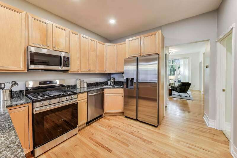 If you're looking for generous square footage and incredible outdoor space in Lincoln Park, this is the place for you! This duplex 2-bedroom, 2-bathroom home features an incredible amount of space, a huge primary suite, a separate family room, two fireplaces - and an incredible private back deck, plus a beautiful shared garden, patio and garage roof deck. It's a true haven in the city! The main level features an entry foyer leading to the bright west-facing living room with a gas fireplace. The adjacent dining room easily accommodates 6, in addition to the breakfast bar and kitchen seating area. The kitchen is large and features plentiful cabinet space, granite counters, and all new stainless steel appliances. The second bedroom, a redone full bathroom and a true laundry room with side-by-side washer and dryer finish out the spacious main level. Downstairs, there is tons of additional storage, plus two spacious closets in the primary suite. The primary bedroom is bigger than most living rooms (17x16!) and easily accommodates a desk, exercise equipment, really anything you want. There is a separate family room on this level with another gas fireplace for cozy winter evenings curled up with a movie and a blanket. The primary bathroom features a walk-in shower, plus a large soaking tub. Many updates have been done in this home, including new furnace and AC (2023), all new kitchen appliances (2025) and an updated main level bathroom (2024). And one last major perk: a garage parking spot comes with this home! The Lincoln Park location here is incredible just steps from top-rated Prescott Elementary (newly ranked #9 in the city!) and feeding to Lincoln Park High School. Beloved Wrightwood Park is less than 1/2 block away and features a swimming pool, baseball diamond, grassy field and much more. Easy 90/94 expressway access at Armitage or Webster. Quick walk to the red/purple/brown trains at Diversey or Fullerton, or hop on the Ashland, Fullerton or Diversey buses. Grocery shopping is a breeze with Mariano's, Jewel and Whole Foods all just down the street. Super close to neighborhood gems like Love Street, Betty's, Avli Taverna, Sal's Trattoria and The Cuptown, plus many more!