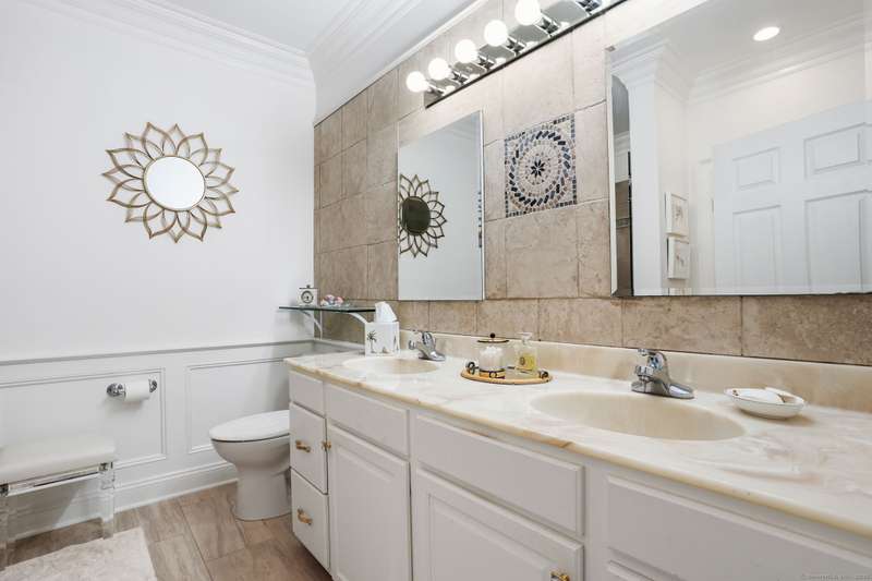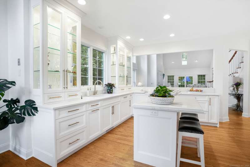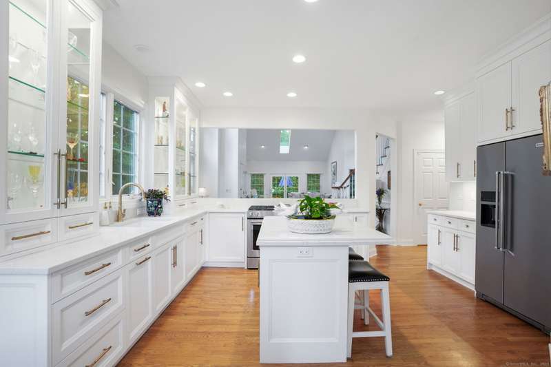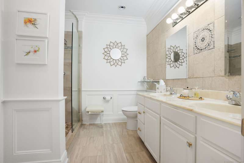 A showpiece home in the highly sought-after Regency Meadows Condominiums, one of Trumbull's most desirable 55+ luxury communities built by the renowned Toll Brothers in 2004. Known for their signature soaring ceilings, dramatic windows, & elegant open layouts, Regency Meadows residences offer timeless appeal paired w/ modern conv. This immaculate end-unit has been completely updated & redesigned w/ today's most upscale finishes, creating a true move-in-ready opportunity. The heart of the home is a newly renovated kit featuring custom cabs w/ glass-front doors, beautiful high end stone countertops, rich oak floors, recessed lighting, & an open-concept layout thanks to a thoughtfully removed wall that now flows seamlessly into the dining & living areas. Freshly painted throughout w/ refinished hdwd fls, the residence exudes a crisp, modern sophistication. The baths have been elegantly updated w/ high-end finishes, while the expansive primary suite offers W/I closets & spa-like comfort. A