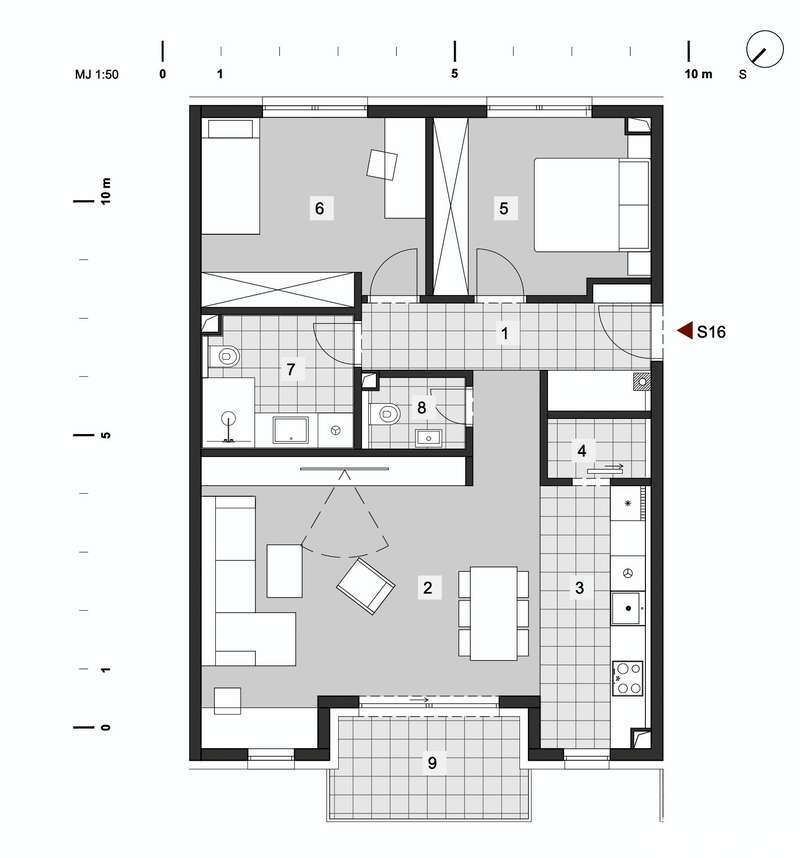 * Ground floor: Four apartments with private gardens, oriented to the east.
