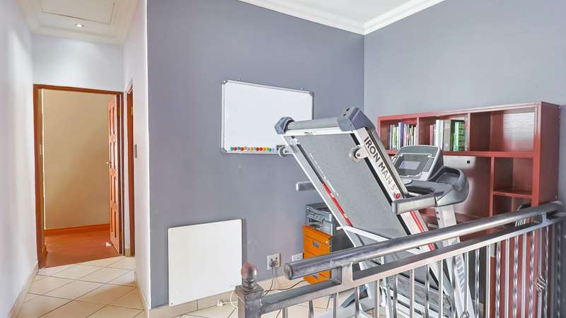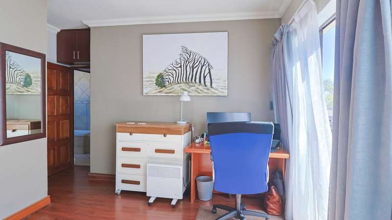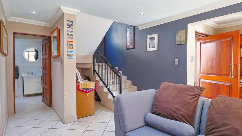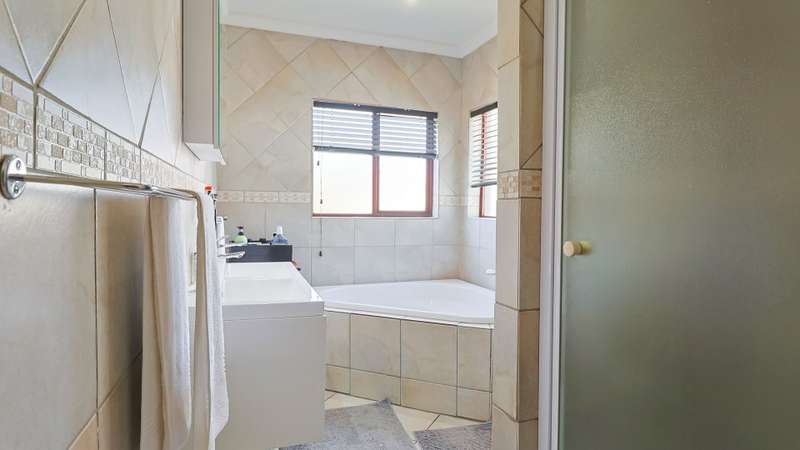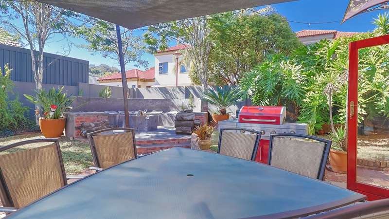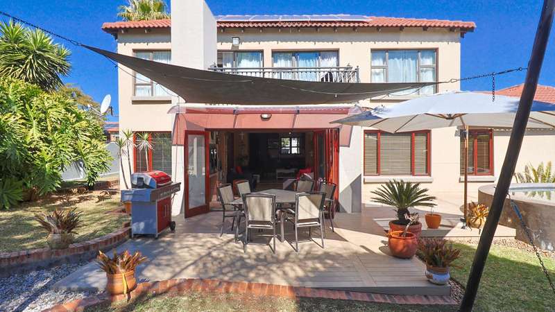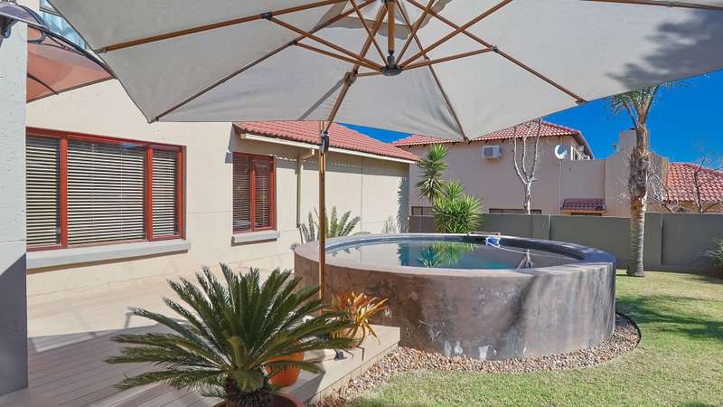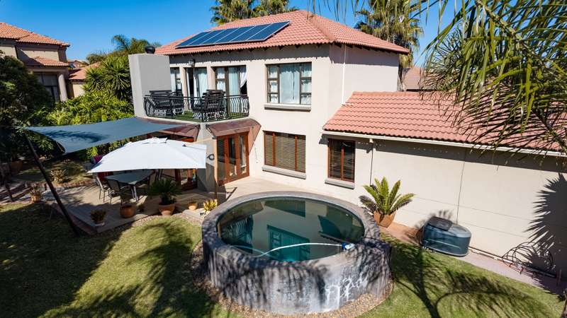 Stunning 3-Bedroom Home in Amberfield Manor Estate, don't miss out! Welcome to this lovely 3-bedroom, 2.5-bathroom home in the highly sought-after Amberfield Manor Estate, offering the perfect blend of modern living and ultimate comfort. As you step inside, you'll be greeted by a spacious, open-plan living area that effortlessly flows throughout the home. The heart of the house is the large kitchen, featuring a gas hob and a generous scullery with extra packing and workspace—ideal for any culinary enthusiast. The inviting dining room is perfect for family meals, while the separate lounge provides a cozy retreat for relaxation. The kitchen seamlessly opens up to a fabulous indoor entertainment area, complete with a built-in braai/fireplace—ideal for year-round entertaining. This area effortlessly transitions to an outdoor decked space, where you can unwind by the swimming pool and enjoy the serenity of the lush green garden. The garden is well-equipped with an automated sprinkler system, ensuring it stays vibrant and lush with minimal effort. Additionally, a cozy boma area invites you to enjoy evenings under the stars. Upstairs, you'll find 3 bedrooms, with the master suite offering a luxurious full en-suite bathroom featuring his and her basins. Two of the bedrooms open up to a balcony, providing lovely views of the surrounding estate and garden. A bonus area offers the perfect space for a home office or study, catering to your work-from-home needs. This home also boasts impressive energy-saving features, including a back-up solar system with a 5KVA inverter, 4 batteries, and 6 solar panels—giving you peace of mind and efficiency for years to come. For added convenience, this property includes a double automated garage, providing secure parking, additional storage space, and an extra covered parking area—perfect for a caravan, boat, or additional vehicles. Situated within the secure and prestigious Amberfield Manor Estate, this home is not only conveniently located but also offers top-tier security and low monthly levies. Don't miss out on the opportunity to own this stunning property—schedule a viewing today!