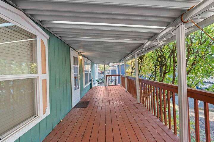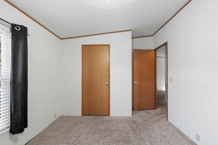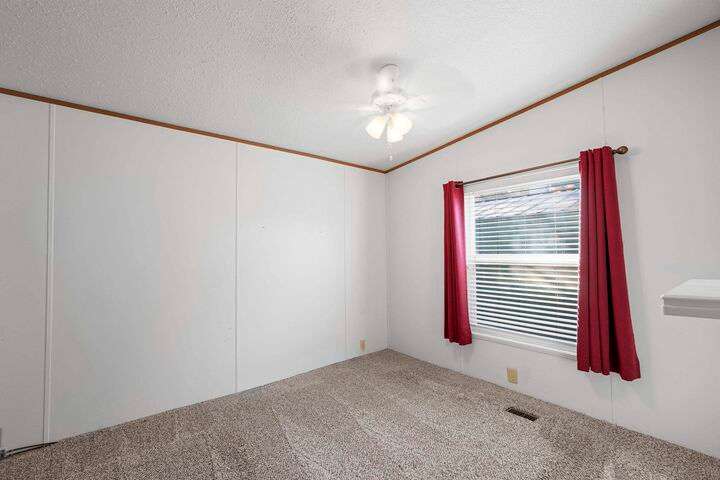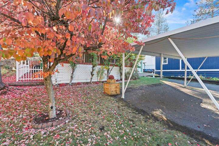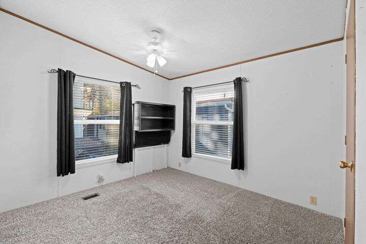 Welcome to this well maintained double-wide manufactured home in the desirable Sans Souci West Community of Spokane. Offering 1,344 sq. ft. of comfortable living space, this home features 3 bedrooms and 2 full bathrooms, including a freshly updated shower. Enjoy open-concept living with a spacious kitchen, dining area, and cozy living room. Step outside to find a covered porch great for enjoying morning coffee or evening shade in the summer. Two covered parking spaces and a peaceful hillside backdrop adds privacy and a touch of nature right in your backyard. Sans Souci West is a well-kept, welcoming 55+ community with great amenities and a friendly atmosphere—perfect for those seeking comfort and convenience close to everything Spokane has to offer. Dimensions on floor plan are not exact, meant as reference only.
