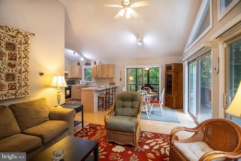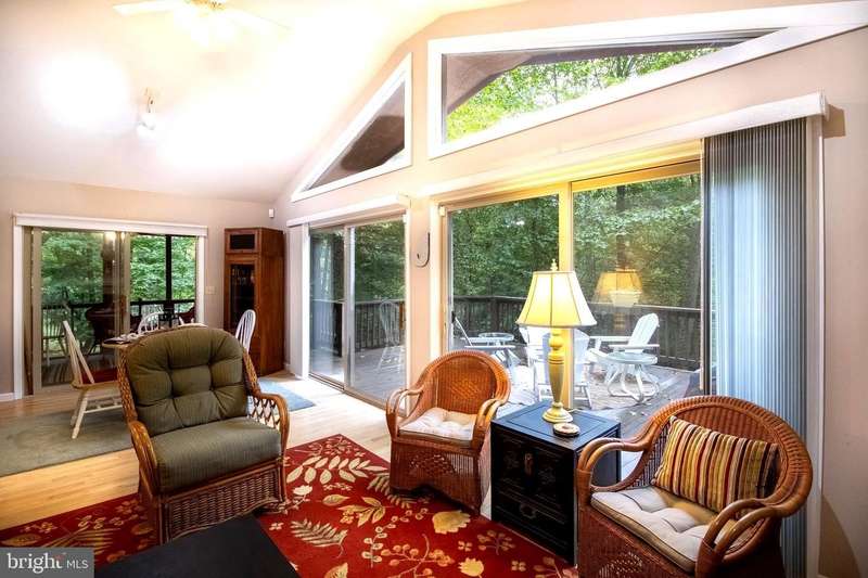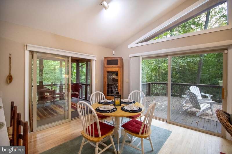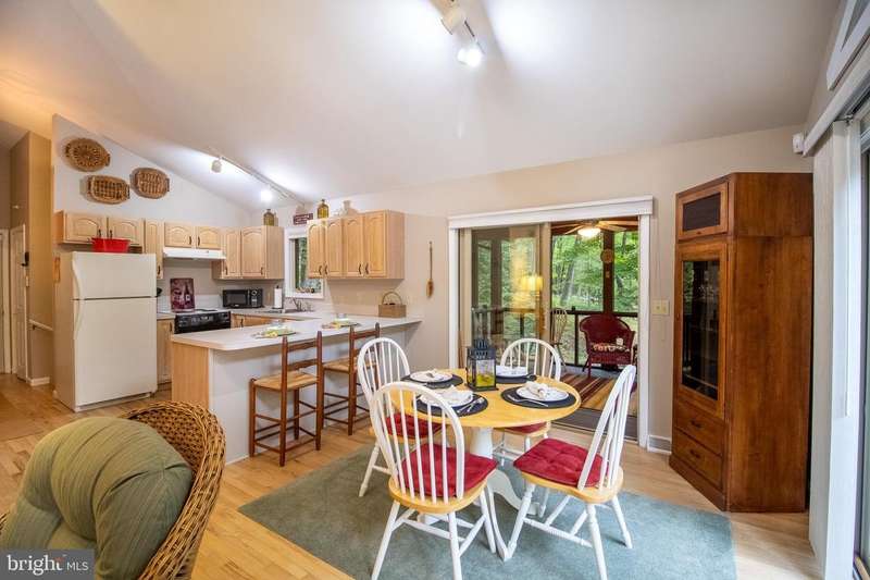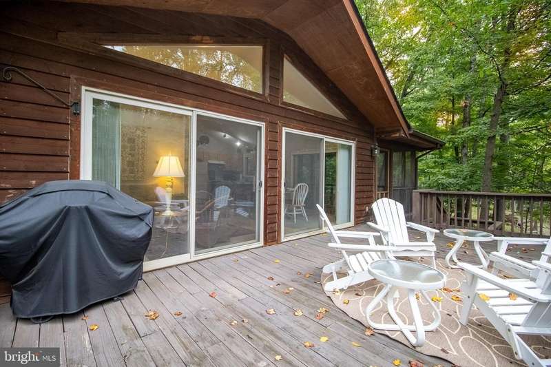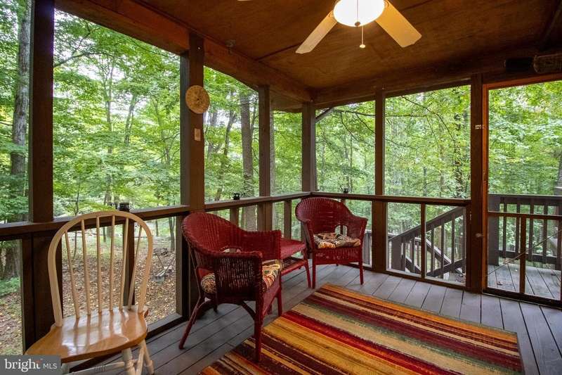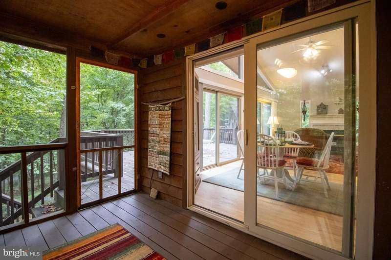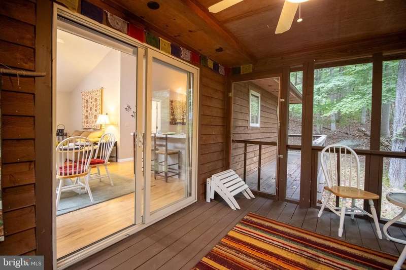 This is the contemporary cottage you've been waiting for. Nothing to do here but move in. Cozy living room with wood burning fireplace, cathedral ceilings and wood floors. Great open floor plan perfect for entertaining. Take your entertaining outdoors as well on 2 expansive decks plus a screened porch right off the dining area. 3 bedroom and 3 bathrooms leaves plenty of space and privacy for all. This community has a an outdoor pool, tennis courts, hiking trails and so many places to visit close by. Great restaurants, breweries and small town boutique shopping and this property backs to the Cacapon State Park.