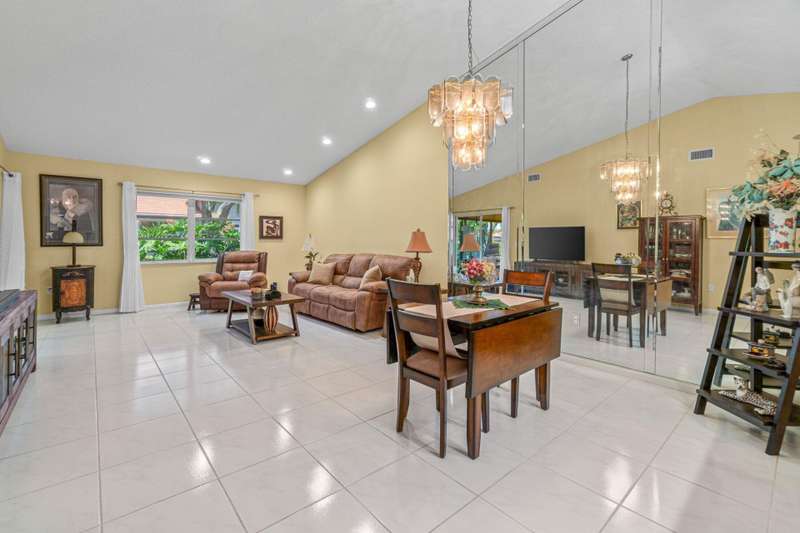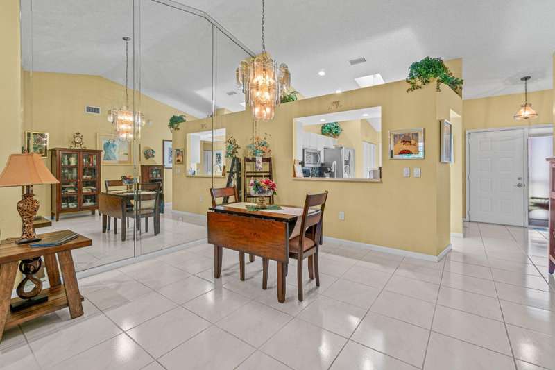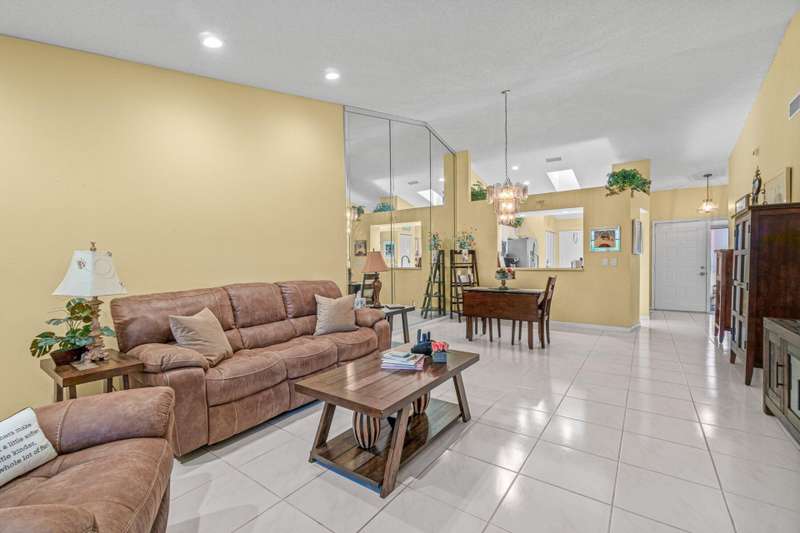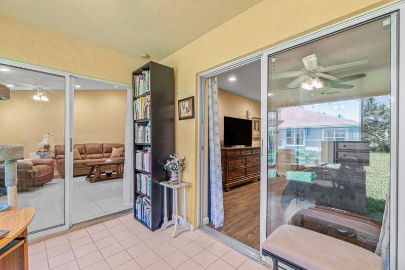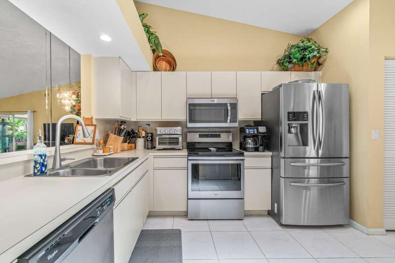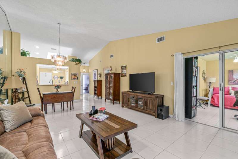 LOVELY 2 BR 2 BA 1 CAR GARAGE VILLA IN A 55+ COMMUNITY. WALKING DISTANCE TO A SATELLITE POOL. EAT-IN KITCHEN HAS STAINLESS APPLIANCES & PULL OUTS IN THE PANTRY. VAULTED CEILINGS IN LIVING & DINING AREAS. LIVING ROOM & PRIMARY BEDROOM OPEN TO A GLASS & SCREEN ENCLOSED PORCH OVERLOOKING A SERENE GARDEN SETTING. 16 TILE IN THE LIVING AREA, VINYL PLANK IN THE PRIMARY BEDROOM, & BAMBOO IN THE GUEST ROOM. NEUTRAL DECOR. A/C & WASHER ARE 3 YEARS OLD. ROOF WAS REPLACED IN 2008. CLUBHOUSE RENOVATIONS TO BE DONE BY DECEMBER, FEATURING A THEATER, RESTAURANT, FITNESS, POOLS, TENNIS, PICKLEBALL, & CARD ROOMS. CONDO FEE INCLUDES WATER, CABLE, INTERNET, & ROOF. PETS MUST BE 35 LBS.OR LESS. CLOSE TO RESTAURANTS, SHOPPING, & THE TURNPIKE.