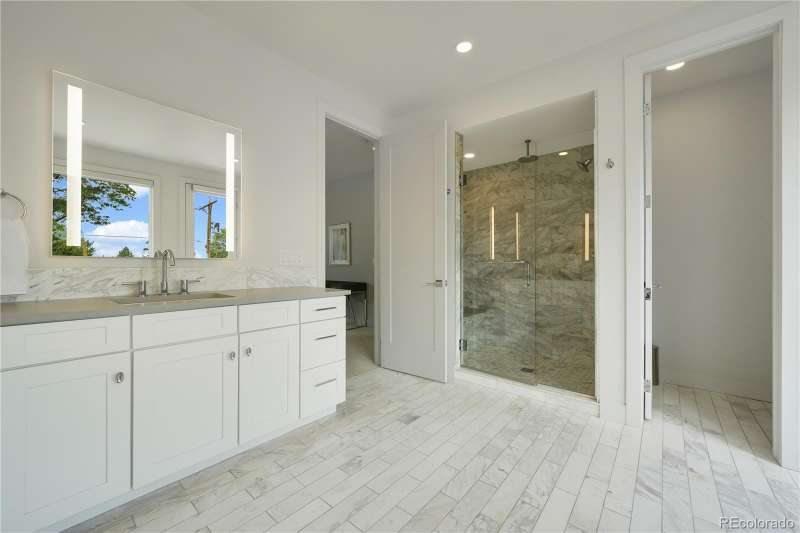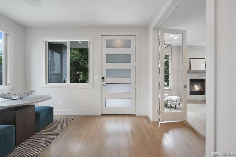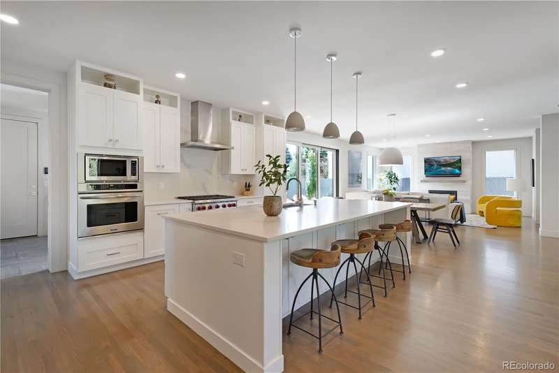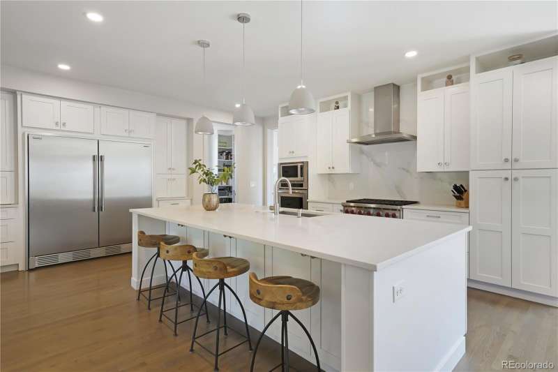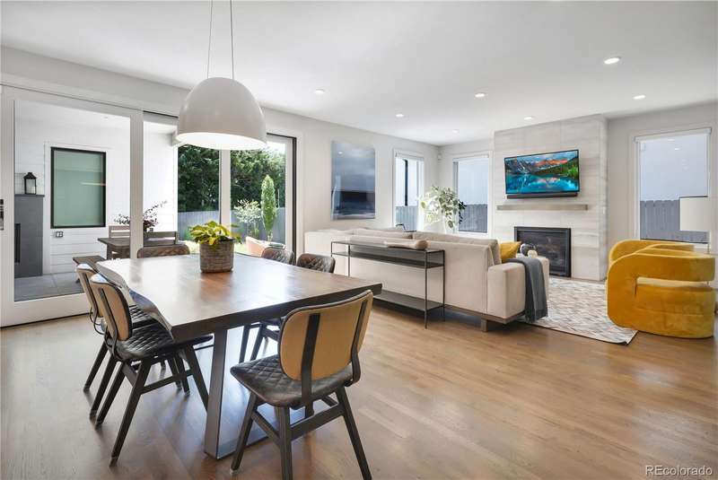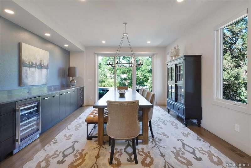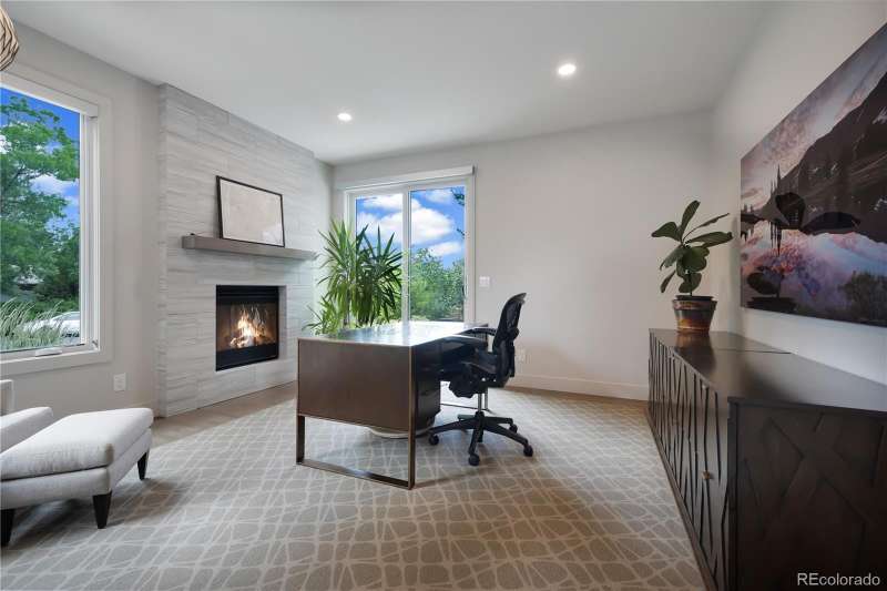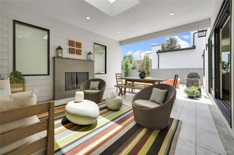 www.3450SCherry.com. Custom-built in 2019, this home features a light-filled open-concept main floor perfect for everyday living and entertaining. The expansive living room is flooded with natural light and connects seamlessly to a casual dining area and gourmet kitchen. Sliding glass doors open to a covered outdoor living space with a built-in gas fireplace, ideal for year-round entertaining. The kitchen features a massive center island, professional-grade stainless steel appliances, custom cabinetry, quartz countertops, and a walk-in pantry. The kitchen also flows seamlessly into the formal dining room, which includes a built-in buffet and wine refrigeratorperfect for hosting and entertaining. A dedicated home office with a fireplace and private patio completes the main floor. Upstairs, the primary suite is a true retreat, with a private balcony, fireplace, a spa-style marble bathroom with a soaking tub, dual vanities, Juliet balcony, and a custom-designed spacious walk-in closet. Two additional upstairs bedrooms each offer en-suite bathrooms and walk-in closets, and the second-floor laundry room adds everyday convenience. The fully finished lower level features a large family room with a wet bar, two conforming bedrooms, a spacious shared bathroom with dual sinks, and ample storage throughout. Additional sought-after features include a three-car garage, mudroom, professional landscaping, and luxury finishes at every turn. Located just a few blocks from the High Line Canal Trail, Eisenhower Park and Rec Center, Happy Canyon Shopping Center, and Wellshire Golf Course, with convenient access to light rail, I-25, and top-rated schools, this home offers the perfect combination of lifestyle and location.