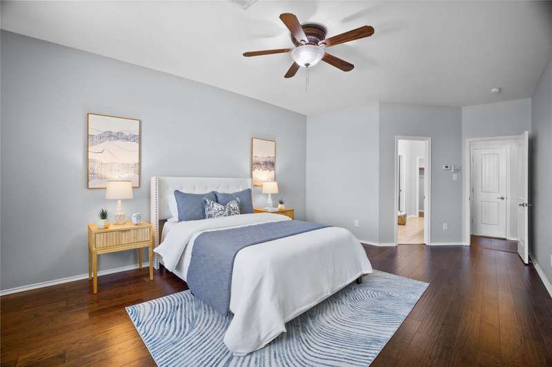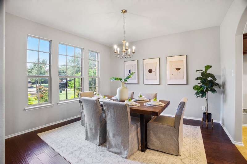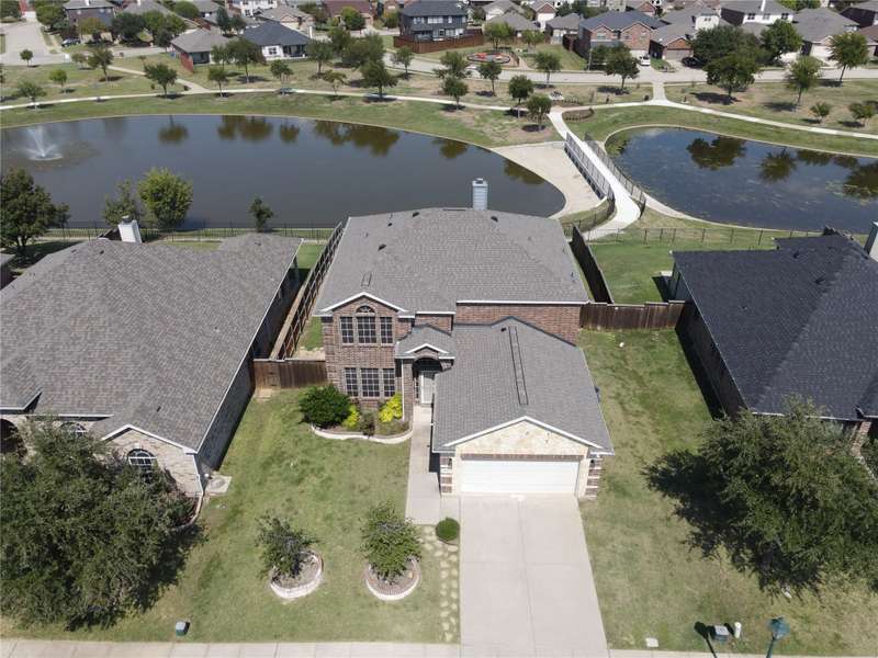 Welcome to your new oasis in the Frisco Ranch subdivision, a home where indoor elegance meets an unforgettable outdoor lifestyle. The standout feature is the backyard retreat: a generous extended patio (mostly covered) flowing into an open-air section with a fire pit, all overlooking two serene ponds and a walking trail at your back fence.Step inside and to your left youll find a formal dining room that connects seamlessly to the kitchen. Continue forward and youll enter the two-story ceiling living room, open to the kitchen and breakfast room, with expansive views of the ponds. The first-floor primary suite offers the same tranquil panorama, along with a spa-like bath complete with a garden tub, separate shower, and a roomy walk-in closet.Enjoy the luxury of no carpet wood flooring runs through all living areas and bedrooms, with tile in the kitchen, breakfast nook, and baths. Upstairs, three additional bedrooms and a large gameroom offer plenty of space for family or guests.Location is key: this home is zoned to highly rated Frisco ISD, and also benefits from low property taxes. Walk to the community pool and playground. And for even more convenience and future potential, youre close to major arteries like US-380 and the Dallas North Tollway.Youll also be minutes from PGA Headquarters & Resort, a world-class golf and resort destination that anchors the regions most ambitious sports and entertainment development. Looking ahead, the Universal Kids Resort is in development nearby in Frisco, projected to open in 2026. This home offers an unbeatable combination pond views, an entertainers backyard, excellent schools, and growth all around. Dont miss the chance to make it yours.