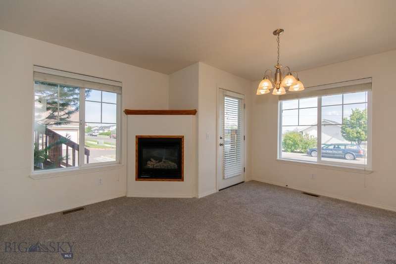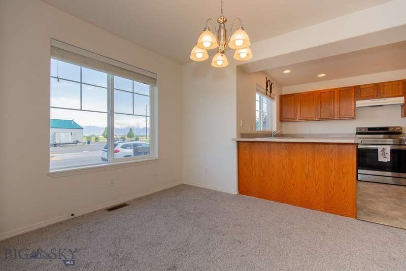 This well-appointed 3-bedroom, 2-bath corner unit offers 1,328 sq ft of single-level living with exceptional views of the Bridger Mountains. The open-concept layout is filled with natural light and complemented by neutral finishes, a gas fireplace, and central A/C. The primary suite features an ensuite bathroom and generous closet space, while two additional bedrooms provide flexibility for guests, an office, or hobbies. A spacious laundry room with washer and dryer and a detached two-car garage enhance everyday convenience. Recent updates include brand-new carpet throughout and a new water heater installed in July 2025. Located just minutes from downtown Bozeman, MSU, and growing new developments, this turnkey home is move-in ready.
