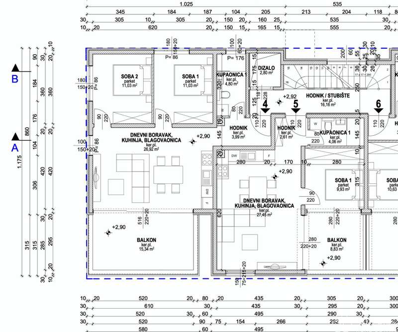 Apartment S4 - 1st floor - living area 57.77 m2 (2 bedrooms + bathroom) + terrace (15 m2 - W) + storage (2.88 m2) + outdoor parking space PM14, total net area 69.09 m2 = 255,000 EUR