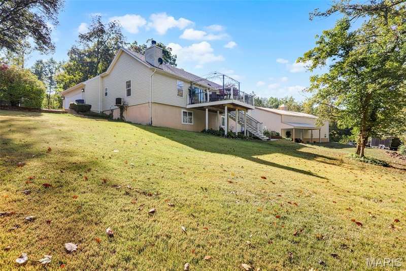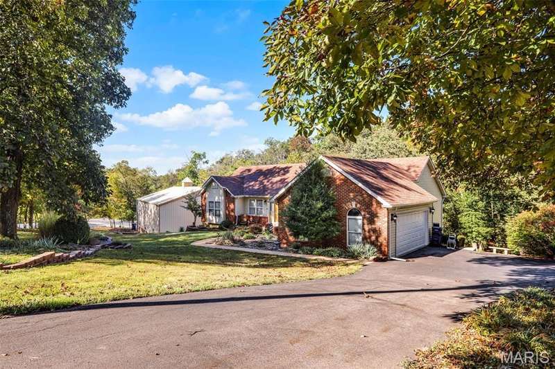 Located at 2201 Highway N, Pacific, MO 63069, this single-family residence on 1.6 acres invites you to discover its charm. Built in 2000, with 1864 square feet of living space on the main level, this property offers a wonderful opportunity to create lasting memories. Features include an entry foyer and living room with hardwood flooring, coffered ceiling, split bedroom floorplan, the master bedroom is spacious, light and bright also featuring the hardwood flooring with a custom renovated master bath that is connected to the main floor laundry, spacious kitchen include a breakfast bar, all black appliances, glass top stove, built in microwave, dishwasher and disposal with ceramic tile flooring, walk out onto the composite deck that overlooks a park like yard. The 2nd and 3rd bedroom are carpeted and spacious, the unfinished lower level has a walk out and rough in for a bath, just waiting your finishing touches. The 60 x 40 outbuilding/workshop steals the show, and is stunning with enough room to park the RV, boat and multiple cars, includes a kitchenette/bar, full bathroom and a covered back porch perfect for all your hobbies, entertaining, or just relaxing. Don't wait this one won't last long, call and make an appointment today.