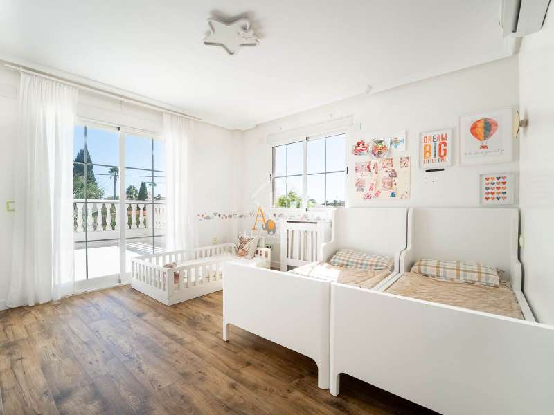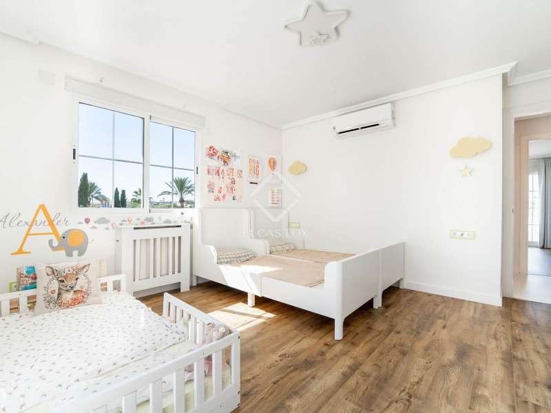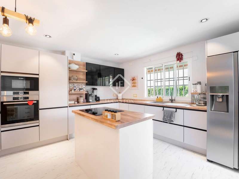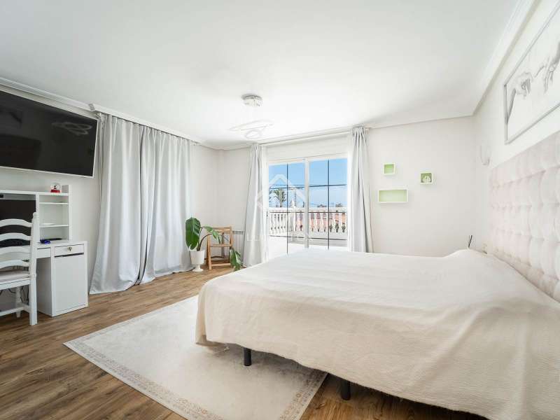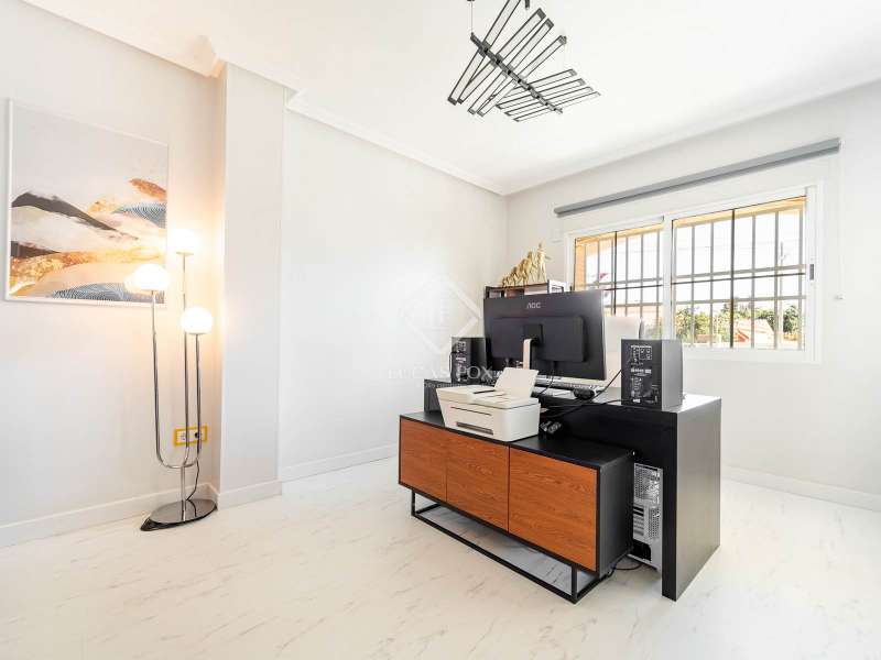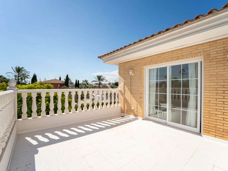 We present this magnificent property that combines the warmth of Mediterranean architecture with renovated and modern interiors, offering a home designed for comfort, spaciousness, and family life. Located in a quiet area, surrounded by nature and with unobstructed mountain views, this property is the perfect balance of privacy, style, and functionality. Upon entering the property, we are welcomed by a spacious and bright living-dining room with large windows and direct access to the terrace and garden, creating an open-plan space that seamlessly connects the interior with the exterior. The fully equipped, separate kitchen combines design and practicality, making it an ideal space for food lovers. On this same floor, we also find a full bathroom and a versatile room currently used as an study, perfect for teleworking or as a guest room. The bedroom area is divided into four spacious bedrooms. The main bedroom suite stands out, with a private bathroom, dressing room, and access to a large private terrace with pleasant views. Two of the bedrooms also have their own terraces, providing light and a private exterior space for each room. One of the bedrooms has an en suite bathroom , and there is also another full bathroom serving the floor. The lower level of the property has been designed as a truly functional and leisure space. Here we find a soundproofed home theater, ideal for enjoying home cinema with the best acoustic quality; a games room designed for the little ones in the family; and a private garage with capacity for 3-4 cars, ensuring comfort and security. The exterior of the property is a true Mediterranean oasis. The private garden features a swimming pool, surrounded by terraced areas for relaxing or sunbathing. As an added bonus, the house features a fully equipped summer kitchen with a bathroom, allowing for comfortable outdoor gatherings and celebrations. Several mountain-facing terraces complete the unique setting for enjoying the Costa Blanca's sunny climate year-round. This property masterfully combines the elegance of the Mediterranean style on the exterior with the modernity of its interior, offering spacious, bright, and perfectly laid-out rooms. Ideal for families seeking quality of life, indoor leisure spaces, and a privileged setting in San Joan de l'Alacant.