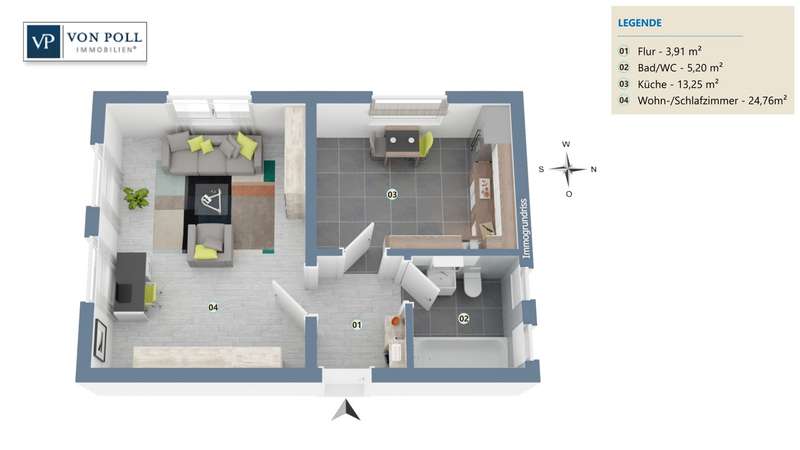 For sale is a very well-kept 1.5-room apartment on the 1st floor of a small apartment building that was built in 1958. With a living area of approx. 46 m², the apartment offers enough space for singles or couples. The apartment has a large hallway that connects all the rooms. The heart of the apartment is the large living and sleeping area, which impresses with its spaciousness and offers a variety of design options. This cozy room has three windows that create a bright and inviting atmosphere. The apartment's daylight bathroom is equipped with a large bathtub, which guarantees a cozy break from everyday life in both summer and winter. Particularly noteworthy is the large kitchen area, which offers you the opportunity to design the kitchen according to your own ideas. The generous room layout leaves space for a cozy dining area that invites you to enjoy meals together. A spacious cellar compartment rounds off our offer. There is also a practical laundry room in the building. The apartment is in a renovated condition and is currently rented out for a basic rent of € 610 per month, which also makes it interesting as a potential investment. The total of eight residential units ensure a pleasant, quiet living atmosphere. The central location provides excellent connections to city life and all necessary facilities for daily needs. Have we piqued your interest? We look forward to hearing from you to arrange a viewing appointment.