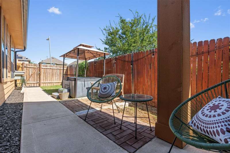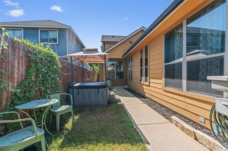 Step into elegance! This unique stand-alone 3/2 two-story condo offers more than just comfort. It offers a convenient, low-maintenance lifestyle. Step inside and enjoy the spacious, open floor plan that welcomes you with its charming warmth. The primary bedroom is on the main floor, conveniently designed with a beautifully remodeled full en suite with a lovely clawfoot tub and dual vanity. A roomy second bedroom and additional full bath are also located downstairs, while a 3rd bedroom/media room is privately located upstairs. The spacious kitchen boasts stainless steel appliances, gas stove, center island, subway backsplash, and marble countertops. Abundant natural lighting throughout helps create gorgeous ambiance for your lazy days or daytime gatherings while recessed lights and built-in upholstered benches add depth to your dinner parties and family suppers alike. Outside, your low maintenance and fenced backyard offers the comfort of multiple sitting areas and even a hot-tub (which will convey if buyer desires). Located just 9 minutes from the Tesla Gigafactory, this home also puts you close to downtown Austin, the airport, UT, and Circuit of the Americas. With low HOA fees, the community offers a fenced dog park, sport courts, playground, nearby scenic trails leading to the Colorado River and even planned social events, including a monthly farmers market. Whether you're a first-time buyer or simply ready for a smart investment, this home offers one incredible opportunity. Roof/gutters and water heater 2025; AC and range 2022.