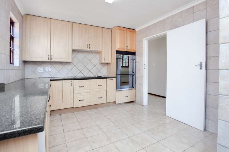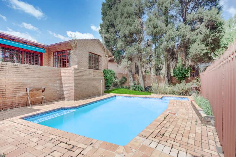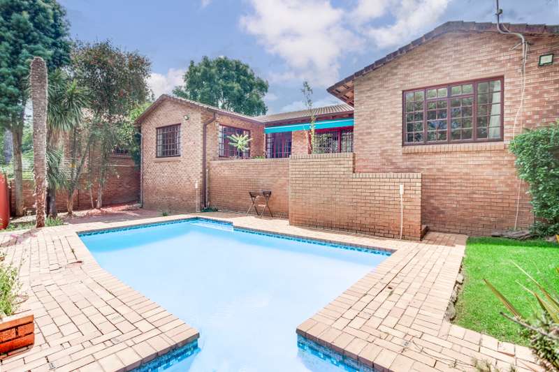 Nothing to do here, just move in. Low maintenance and great security in a small, quite complex. Entrance leads to dining room and granite kitchen with pantry. Double size lounge and fully enclosed patio lead to open patio with top views of green belt and spruit. Four bedrooms(MES), two bathrooms. Main bedroom with WIC and full bathroom (double vanity). Manicured private garden with a sparkling pool and private gate to spruit area. Double automated garage. Staff accommodation. Alarm and outside beams, b/bard, electric fence. Perfect property to settle in.